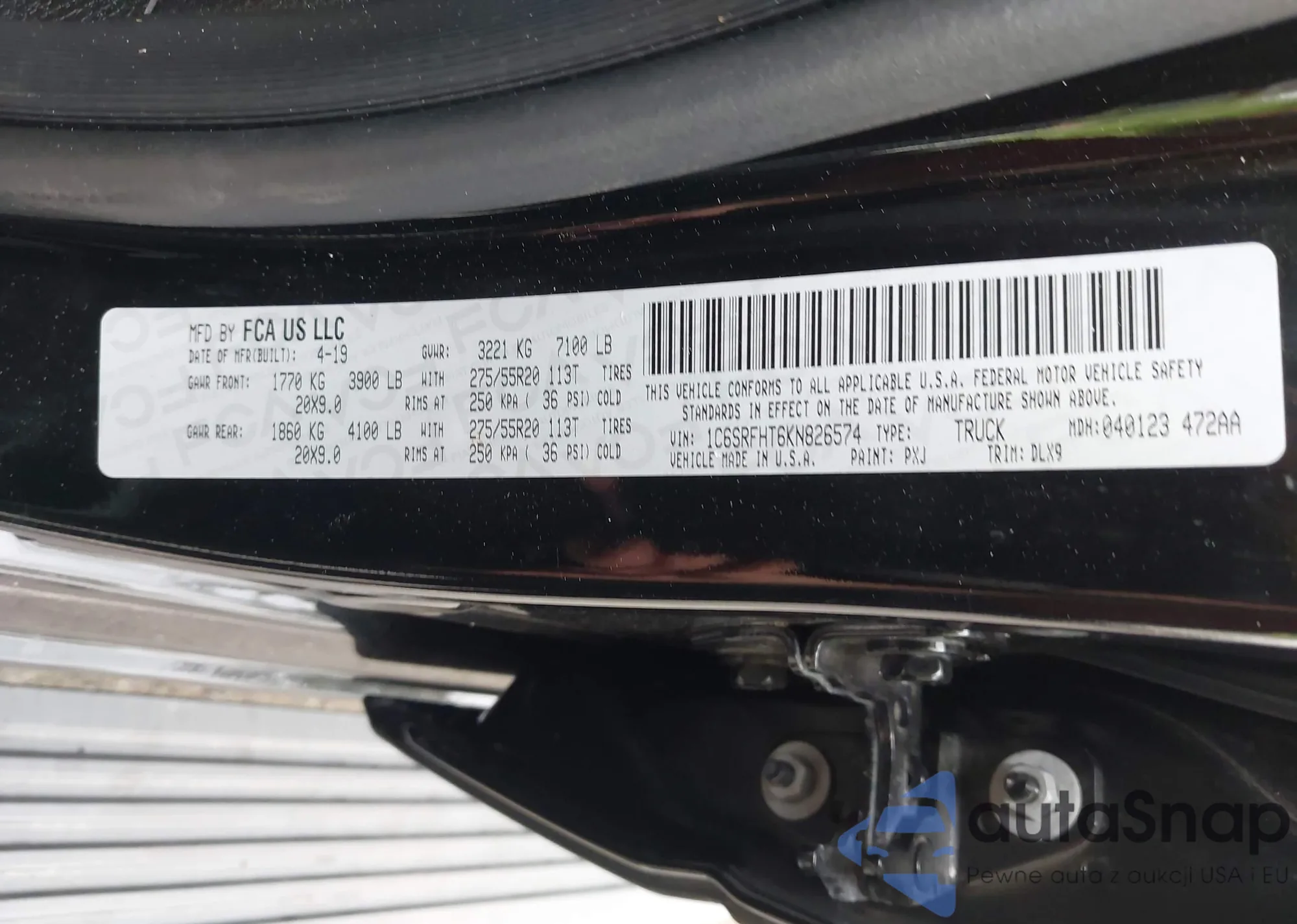 VIN: 1C6SRFHT6KN826574