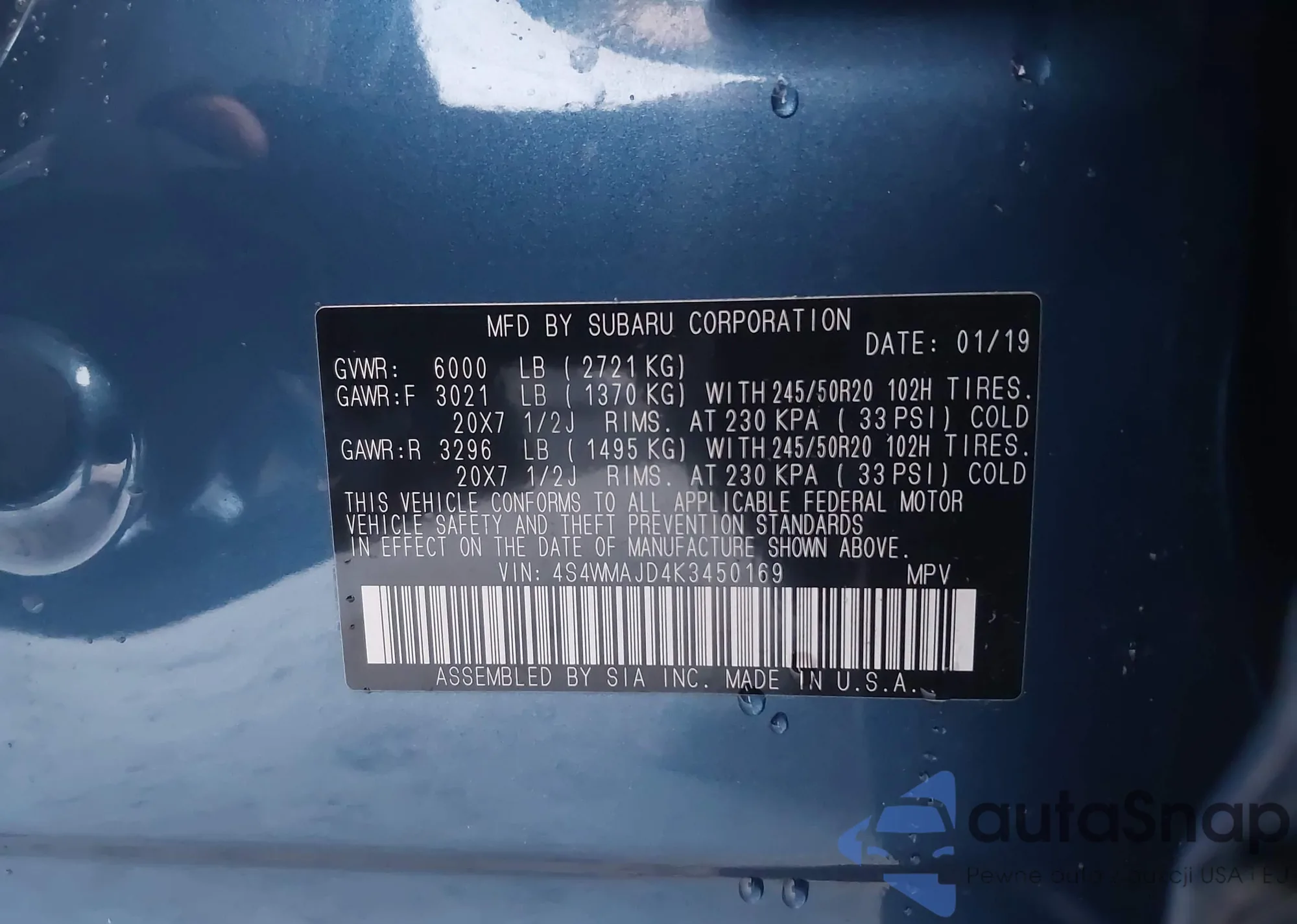 VIN: 4S4WMAJD4K3450169