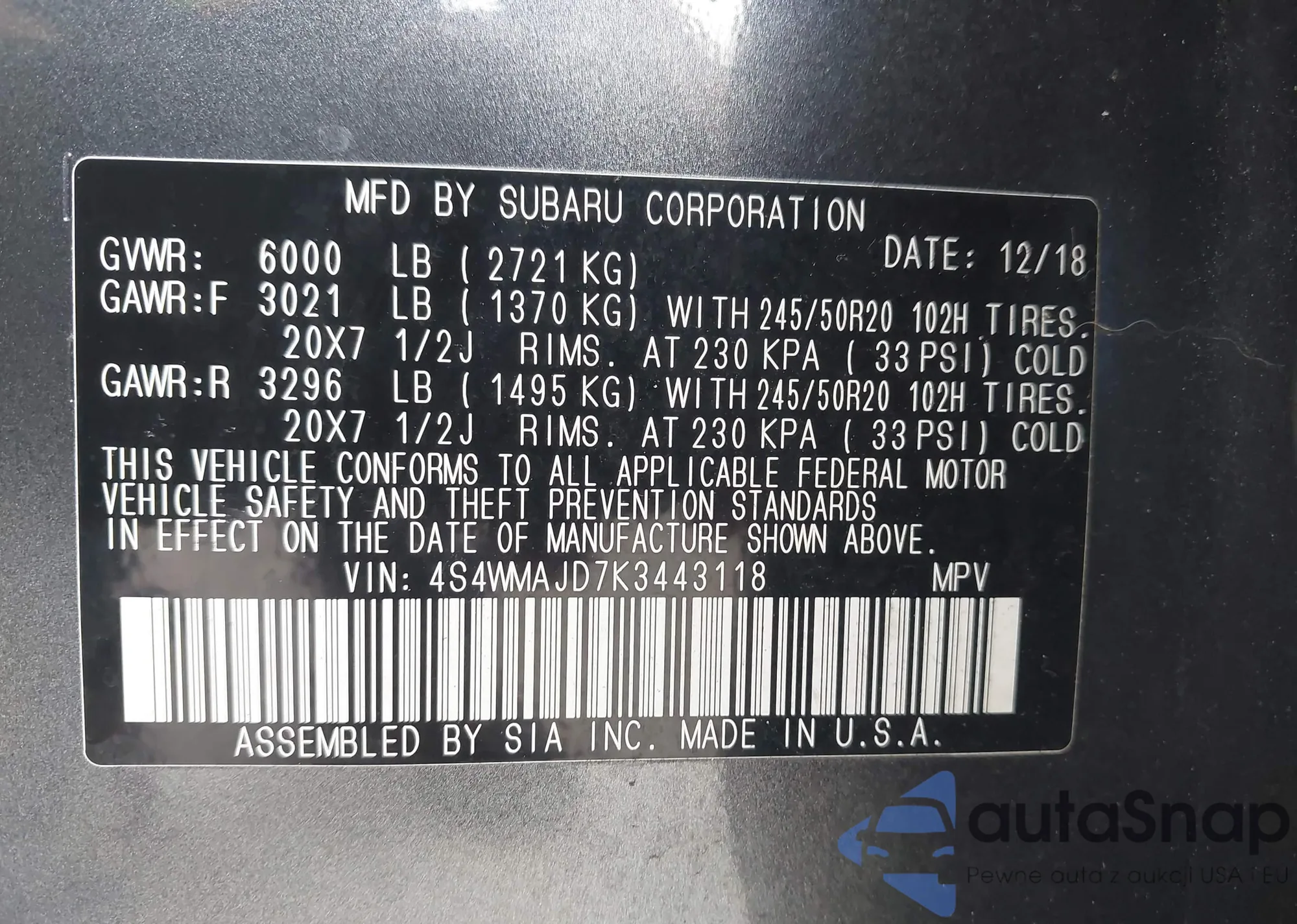 VIN: 4S4WMAJD7K3443118