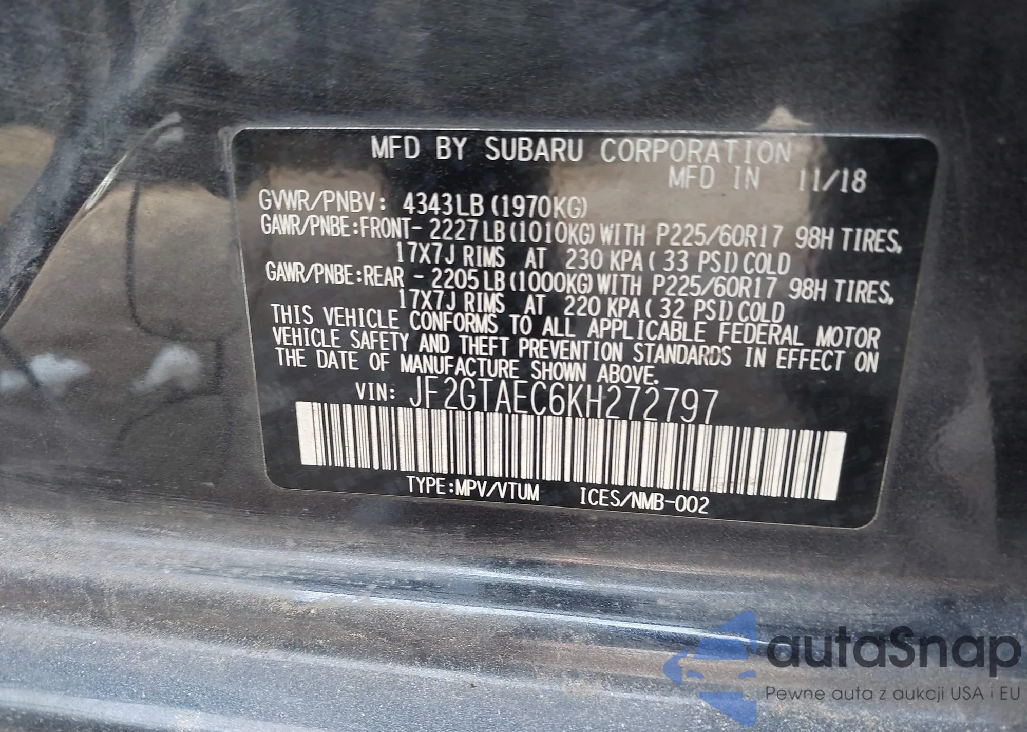 VIN: JF2GTAEC6KH272797