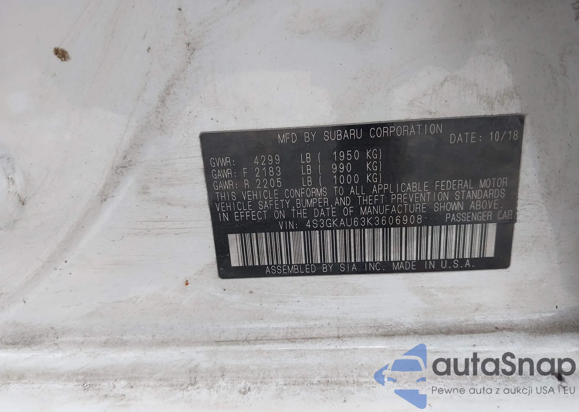 VIN: 4S3GKAU63K3606908