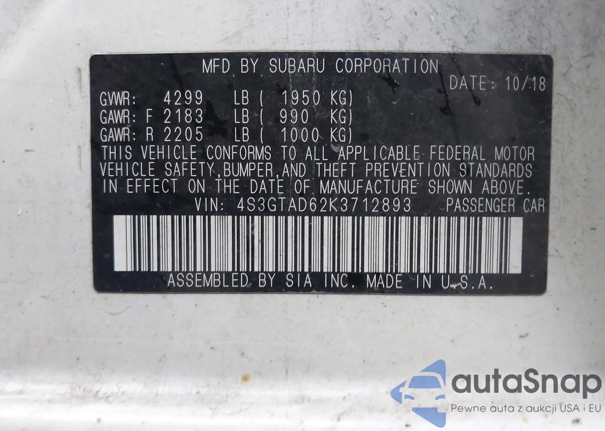 VIN: 4S3GTAD62K3712893
