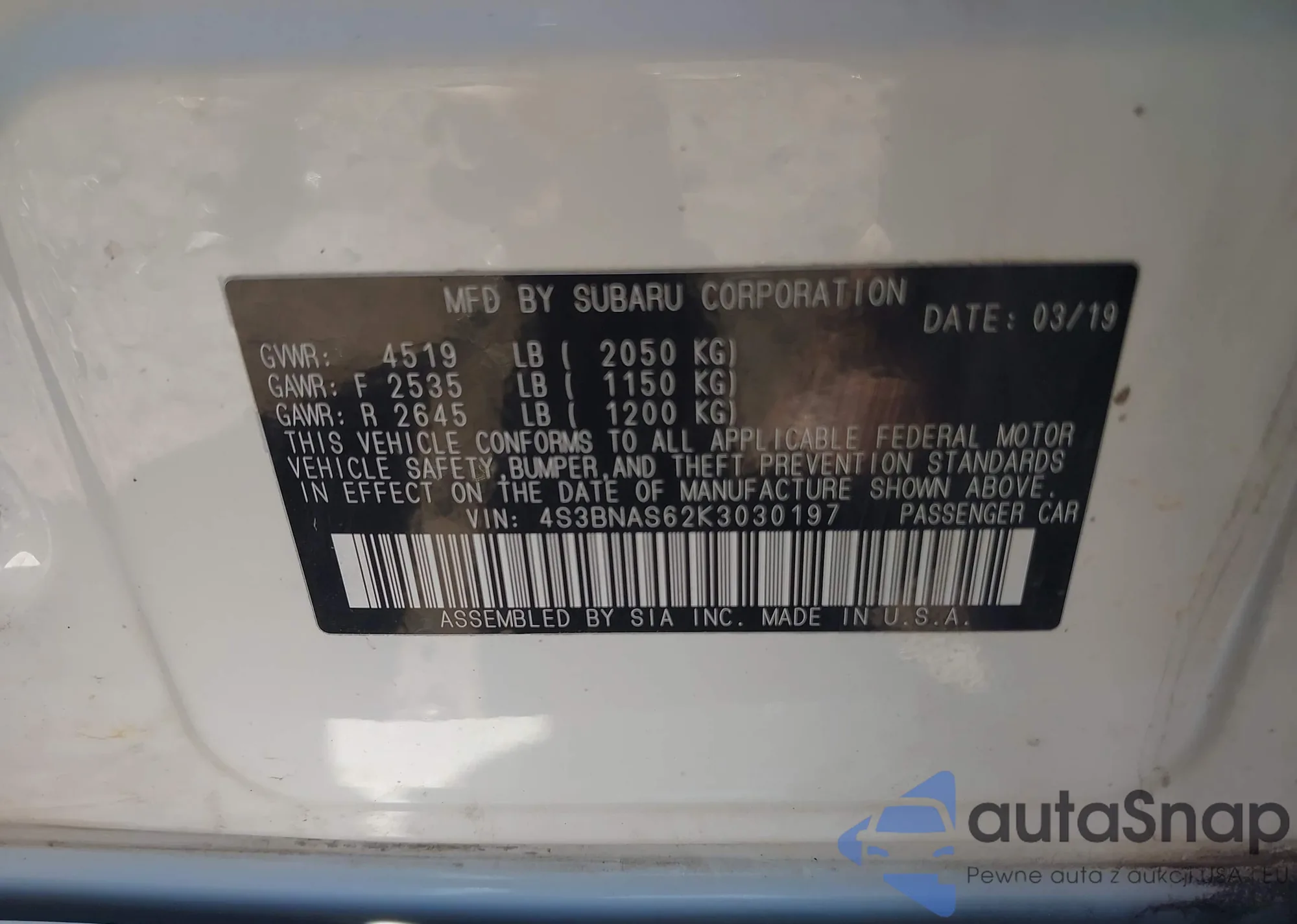 VIN: 4S3BNAS62K3030197