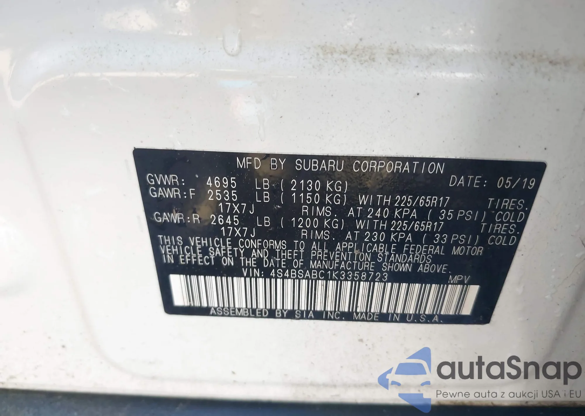 VIN: 4S4BSABC1K3358723