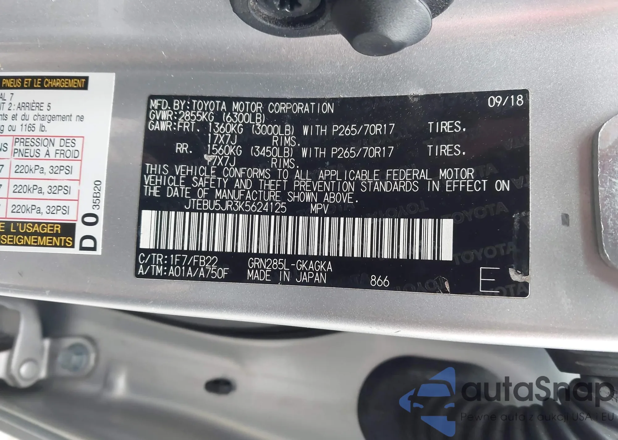 VIN: JTEBU5JR3K5624125