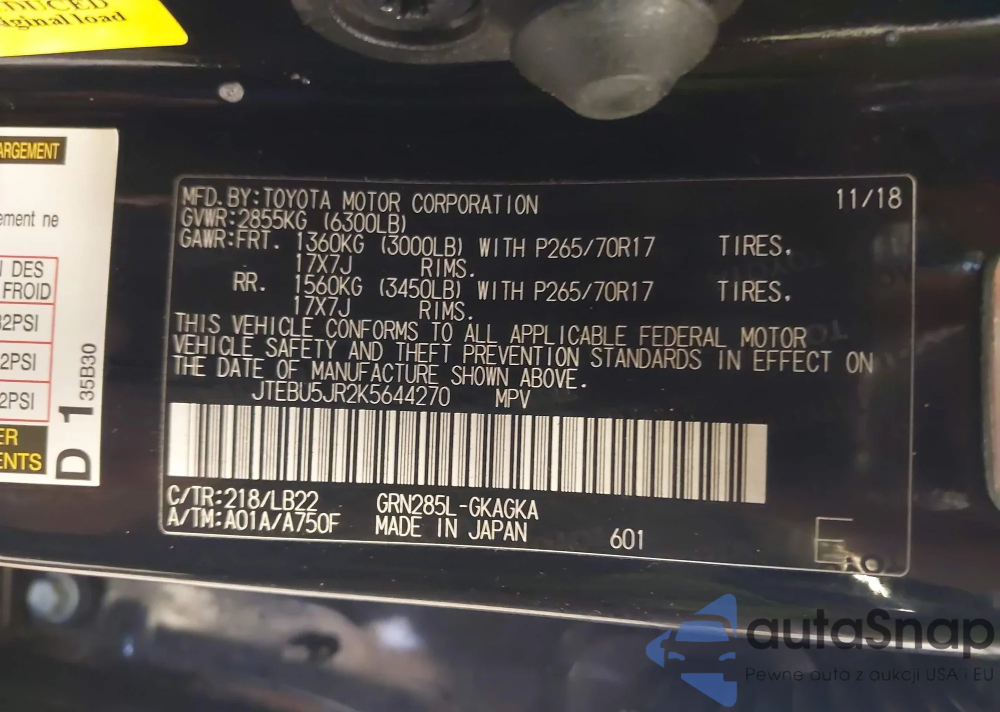 • VIN: JTEBU5JR2K5644270