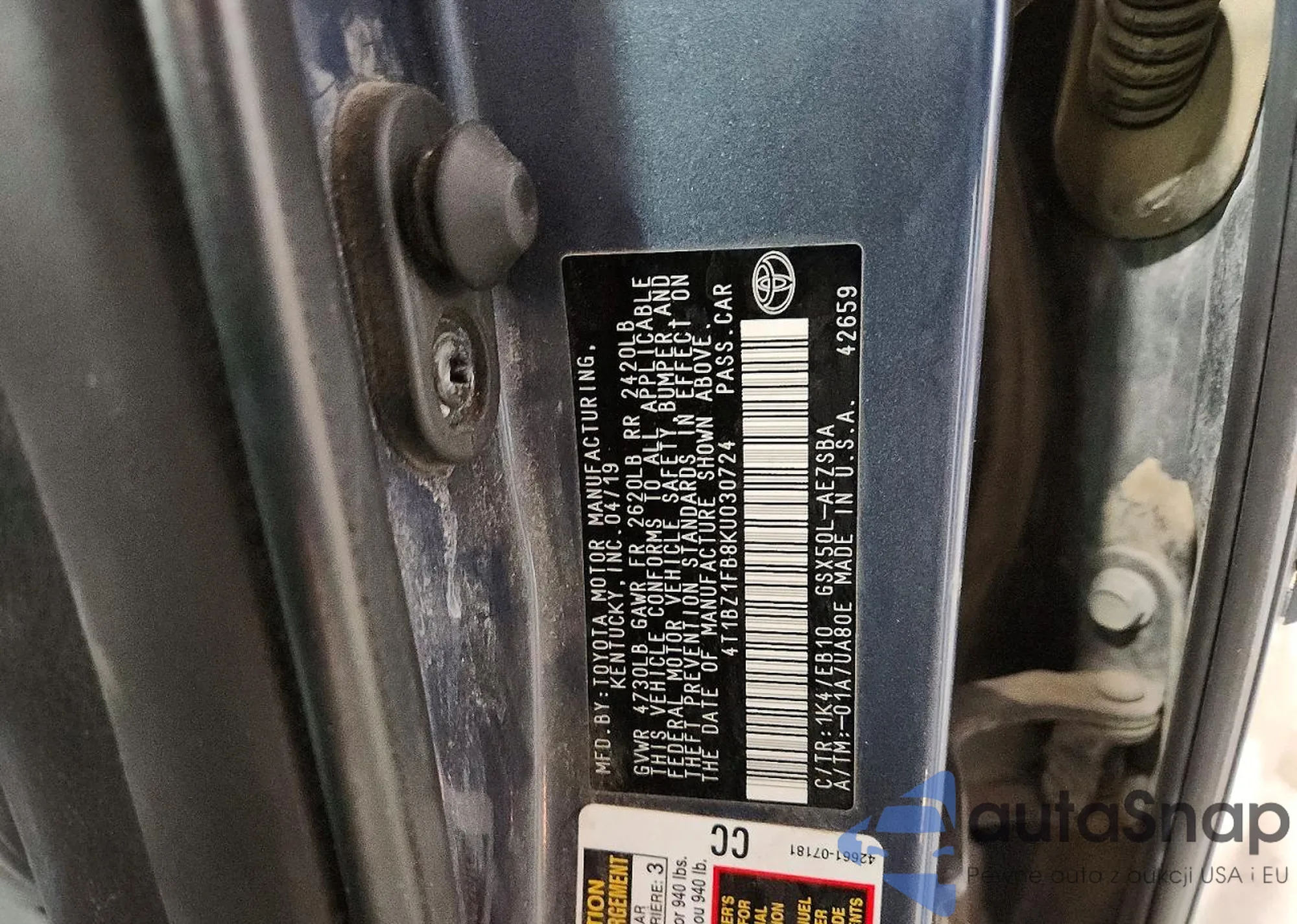 VIN: 4T1BZ1FB8KU030724