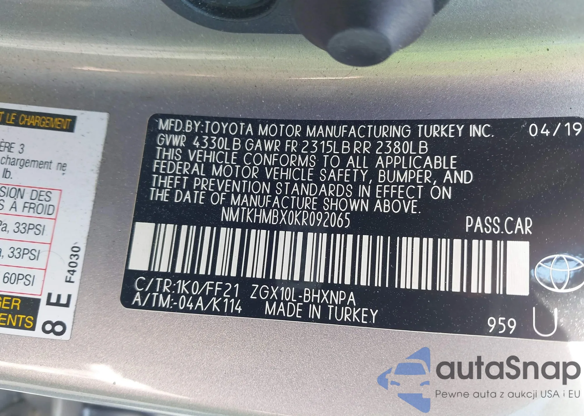 • VIN: NMTKHMBX0KR092065