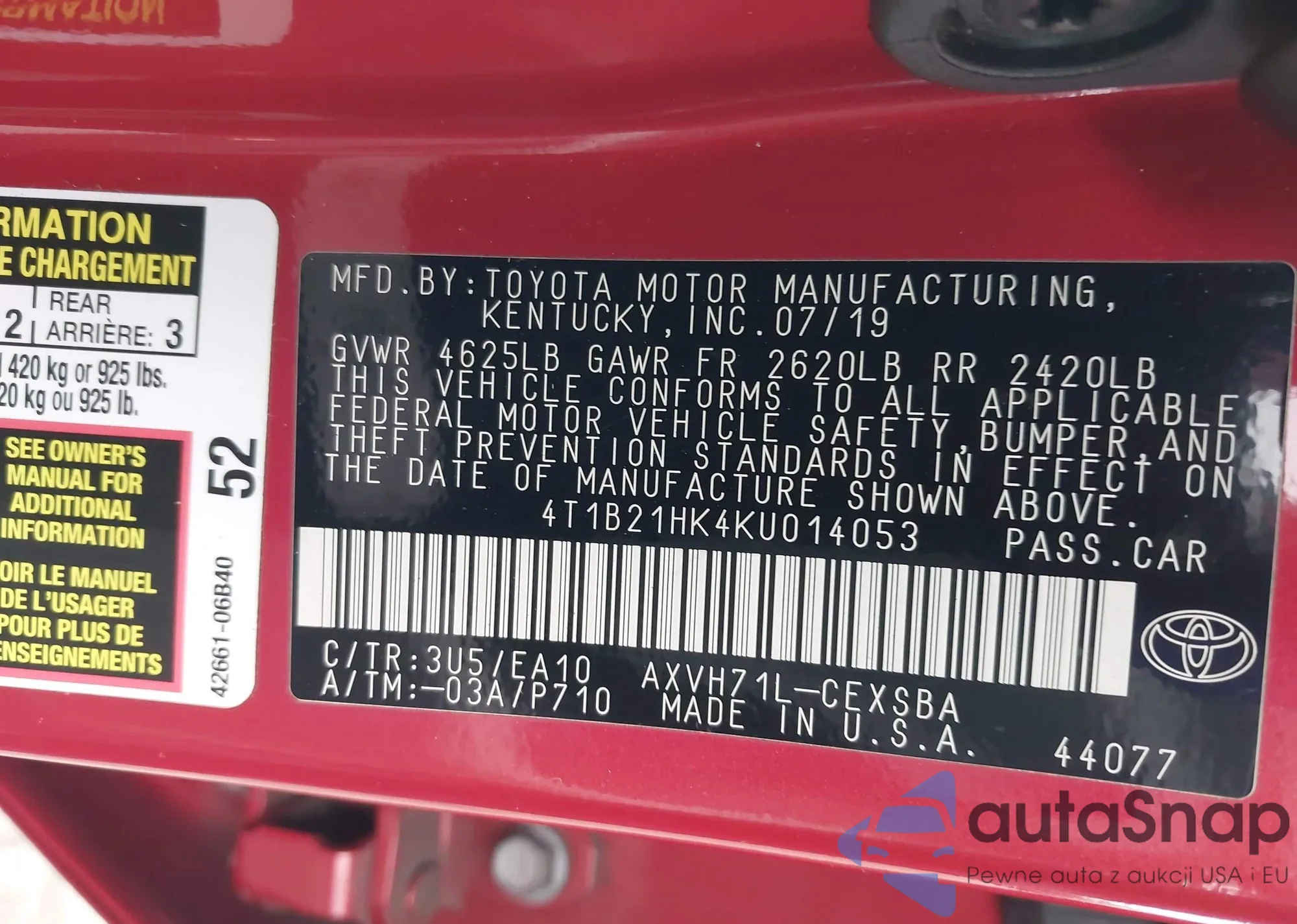 VIN: 4T1B21HK4KU014053