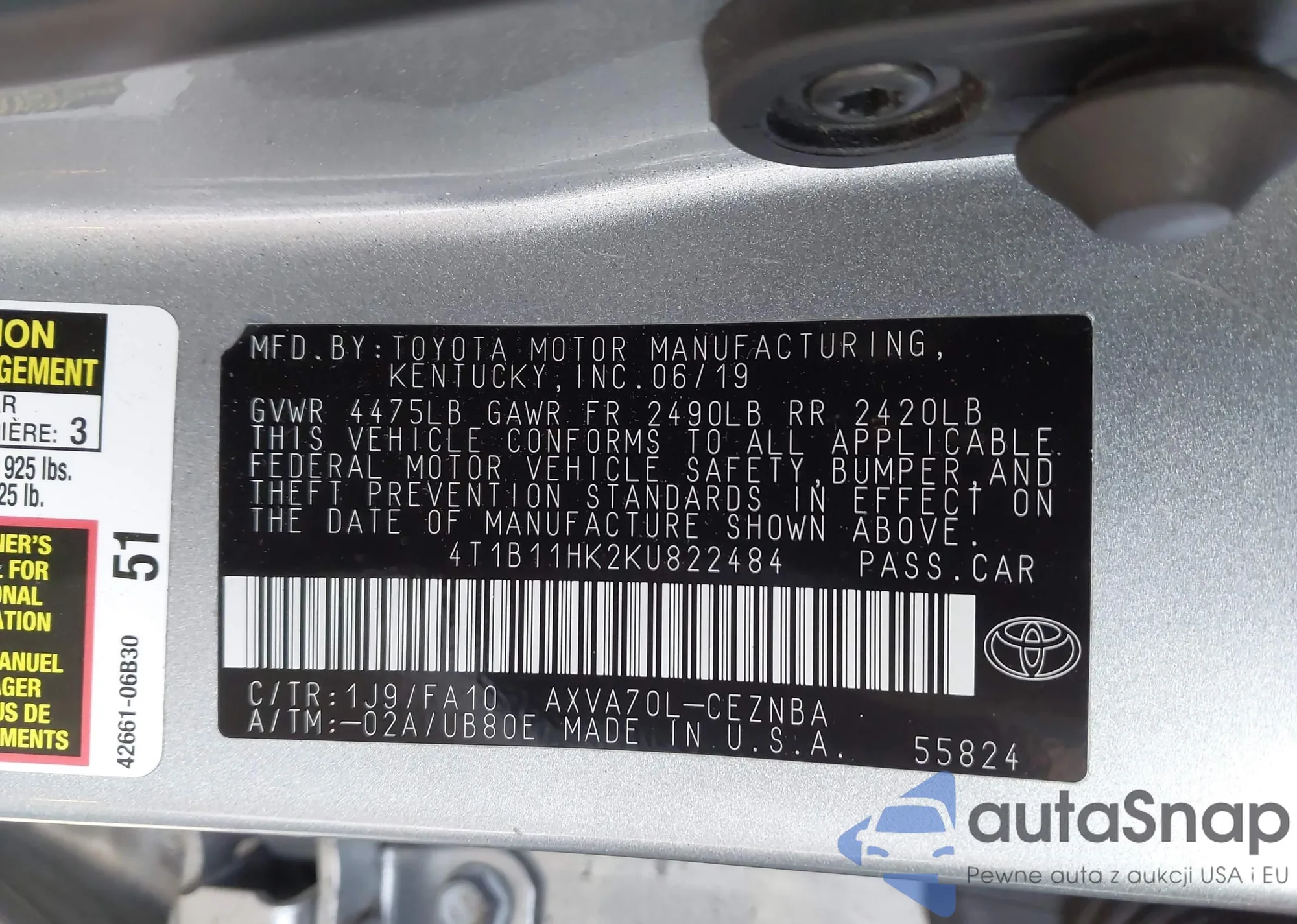 VIN: 4T1B11HK2KU822484
