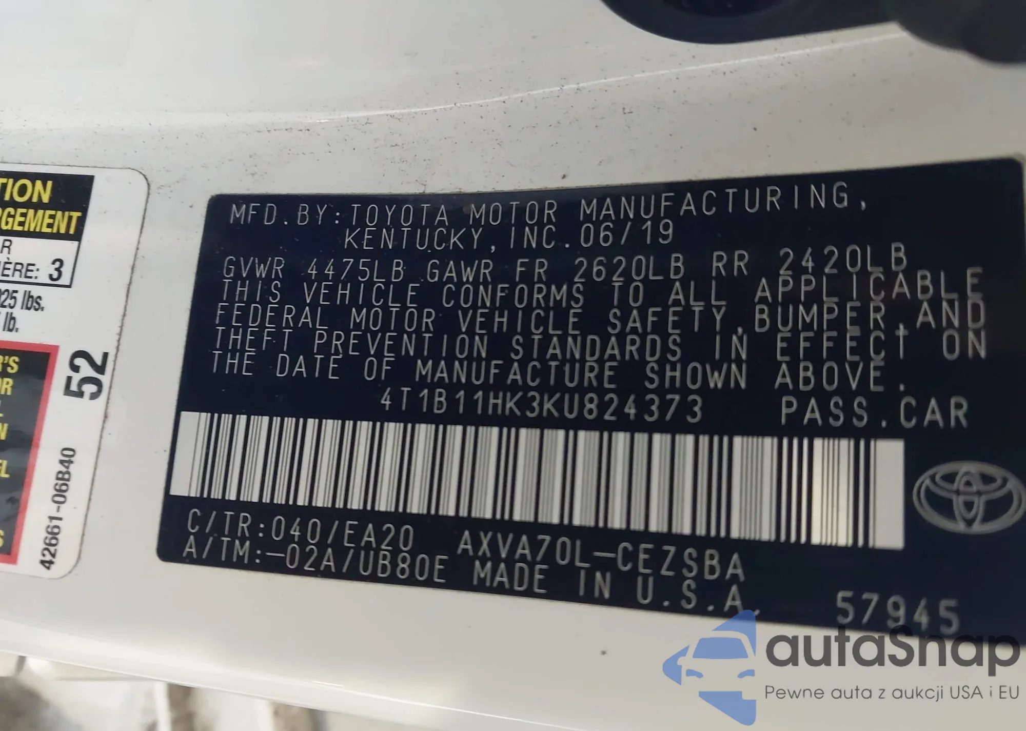 VIN: 4T1B11HK3KU824373