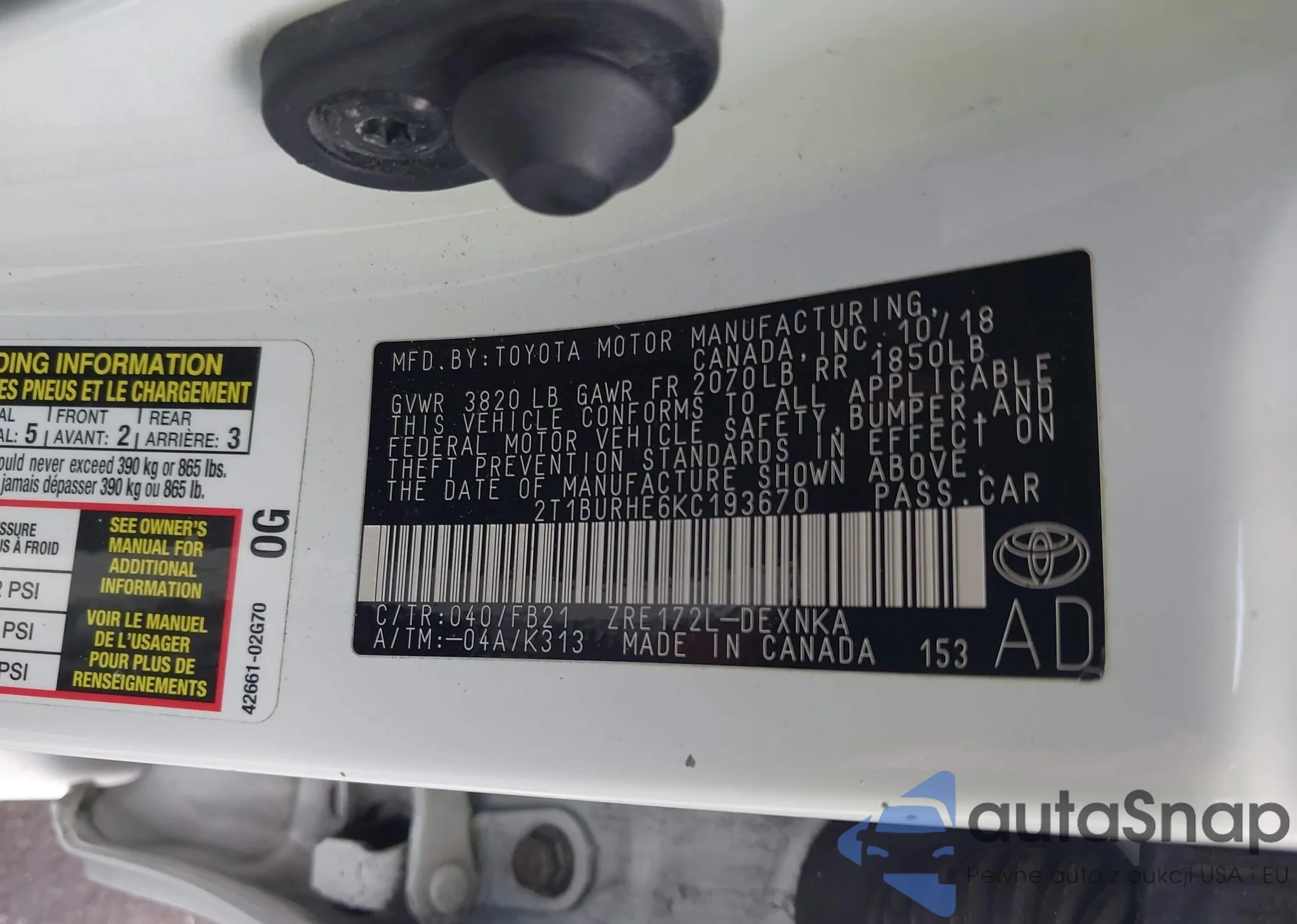 VIN: 2T1BURHE6KC193670
