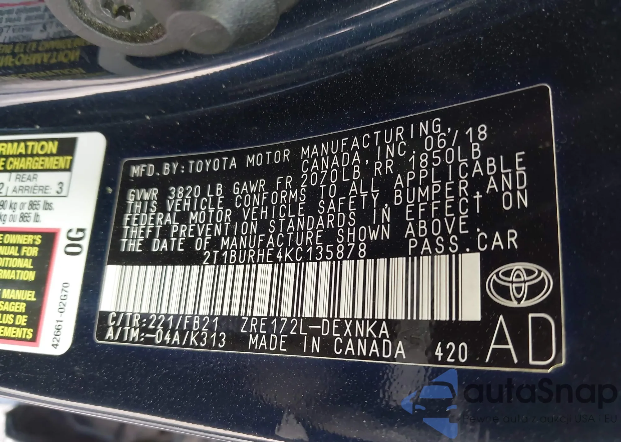 Samochód Toyota Corolla 2019 (VIN 2T1BURHE4KC135878) nie był wcześniej licytowany. Dokumenty są czyste, przebieg odpowiada lub jest niższy niż średnia rynku. Sprzedaje go firma ubezpieczeniowa – polecamy zakup. Dostawa do portu zajmie ok. 6–8 tygodni.