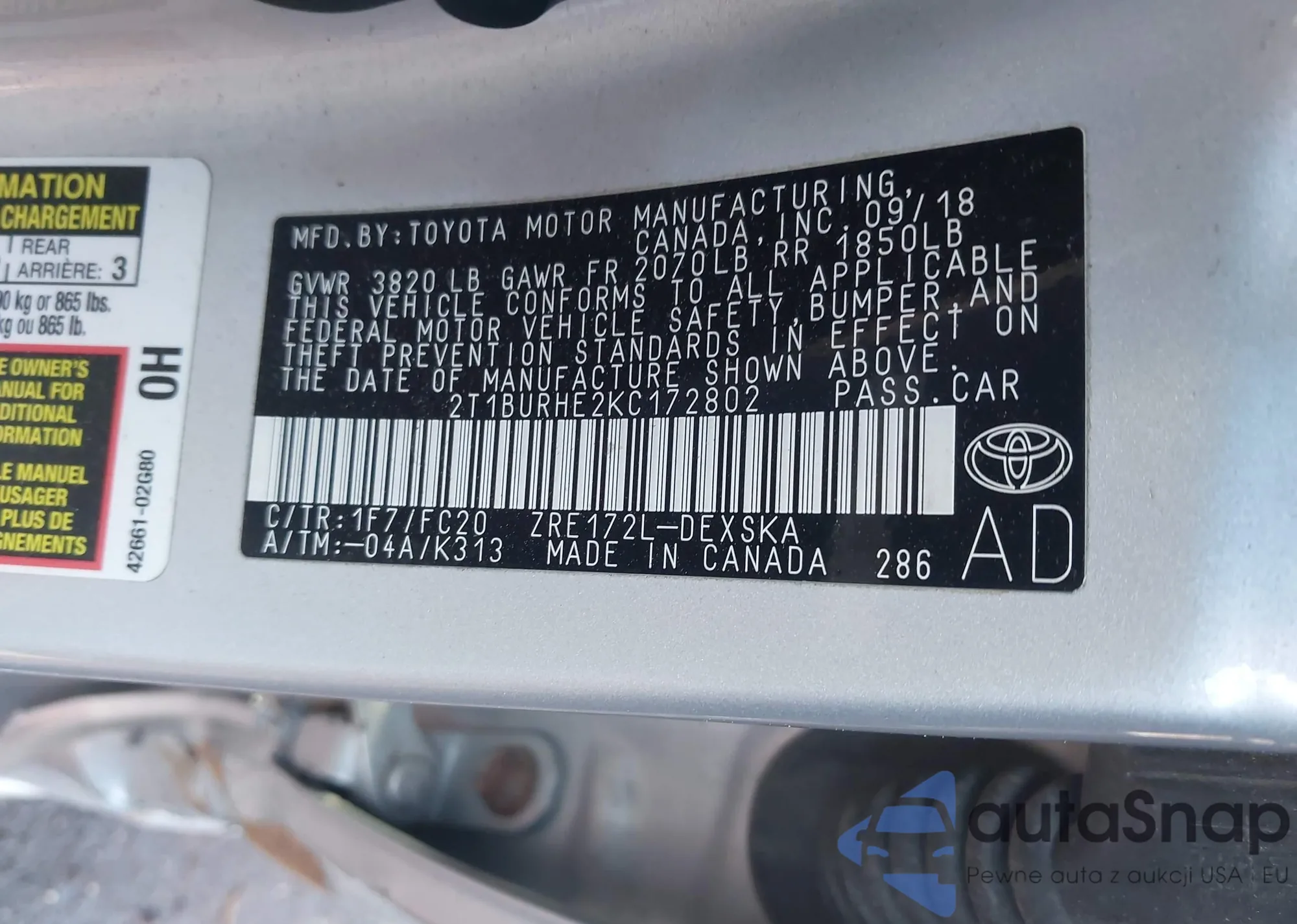 Samochód Toyota Corolla 2019 (VIN 2T1BURHE2KC172802) był już licytowany 1 razy i/lub sprzedaje go niezweryfikowany sprzedawca. Zalecamy raport Carfax i potwierdzenie możliwości rejestracji pojazdu przed zakupem.