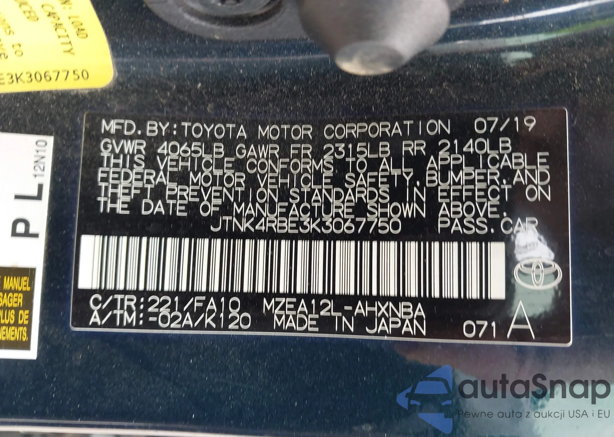 VIN: JTNK4RBE3K3067750