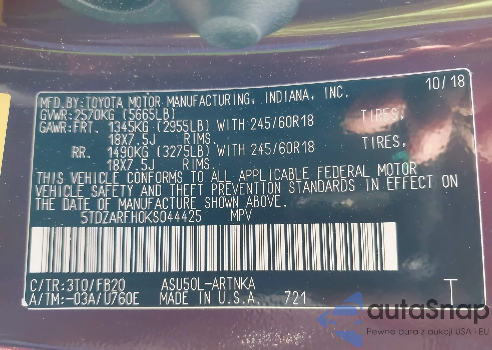 Samochód Toyota Highlander 2019 (VIN 5TDZARFH0KS044425) nie był wcześniej licytowany. Dokumenty są czyste, przebieg odpowiada lub jest niższy niż średnia rynku. Sprzedaje go firma ubezpieczeniowa – polecamy zakup. Dostawa do portu zajmie ok. 6–8 tygodni.