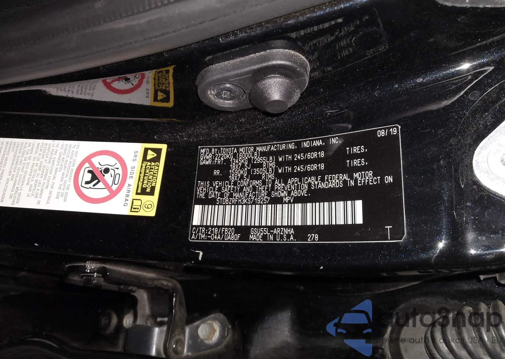 VIN: 5TDBZRFH3KS719257