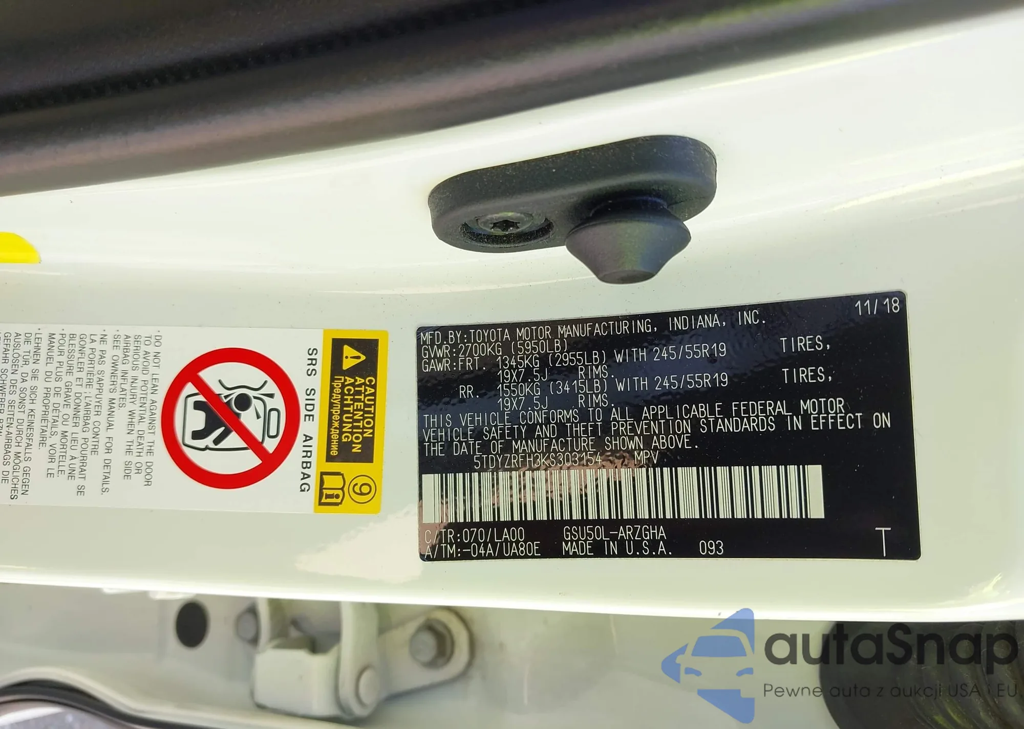 VIN: 5TDYZRFH3KS303154