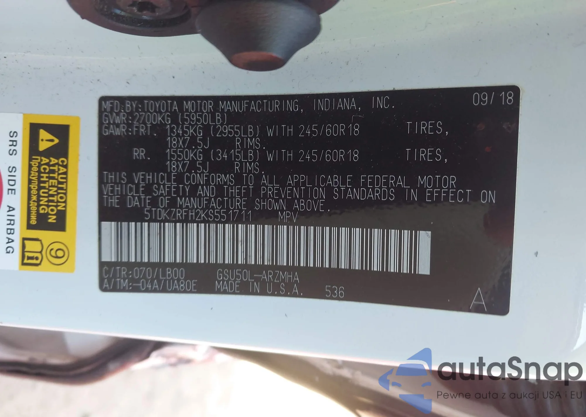 Toyota Highlander 2019 – Historia pojazdu (sprzedany na IAAI)