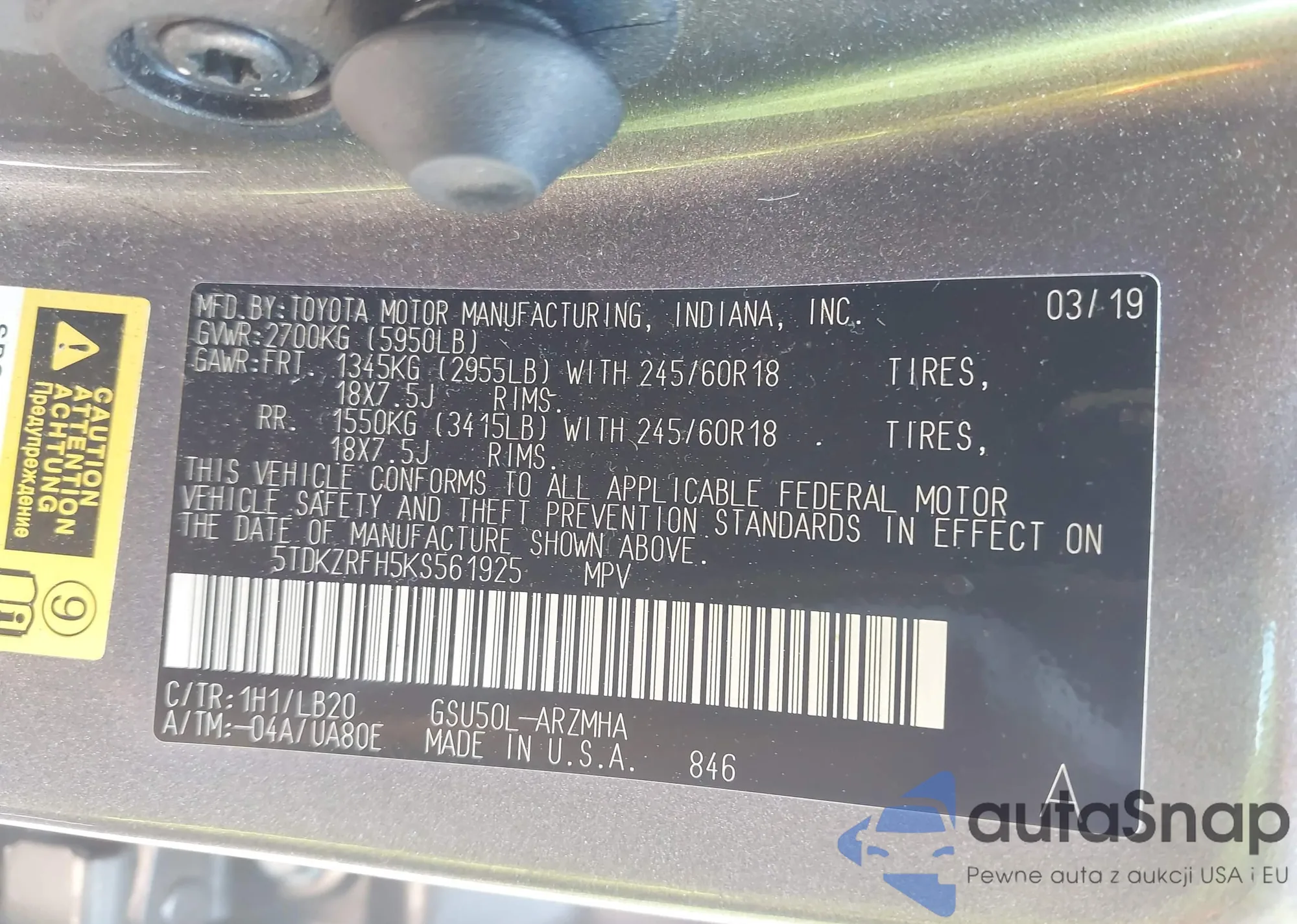 VIN: 5TDKZRFH5KS561925