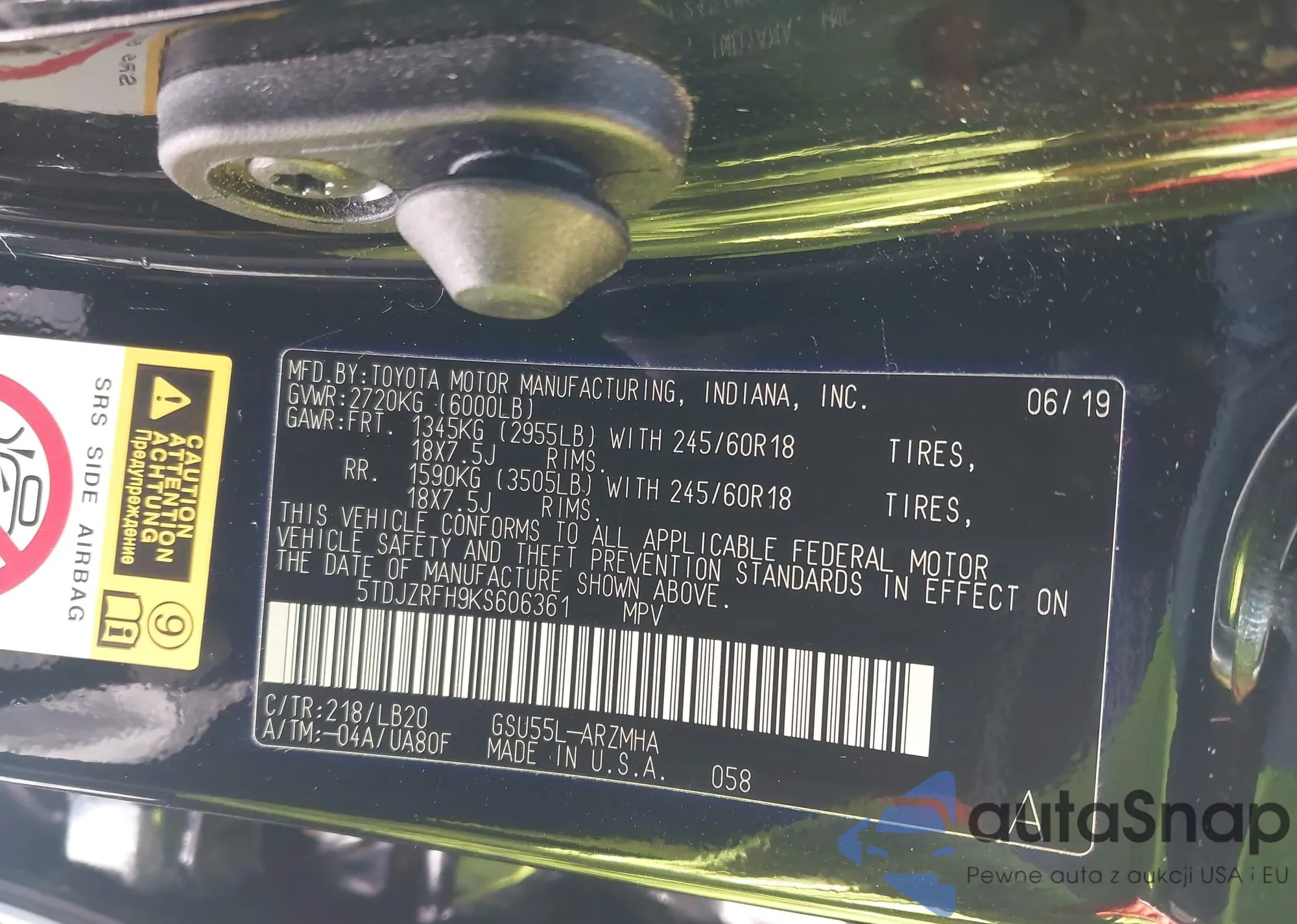 Samochód Toyota Highlander 2019 (VIN 5TDJZRFH9KS606361) nie był wcześniej licytowany. Dokumenty są czyste, przebieg odpowiada lub jest niższy niż średnia rynku. Sprzedaje go firma ubezpieczeniowa – polecamy zakup. Dostawa do portu zajmie ok. 6–8 tygodni.