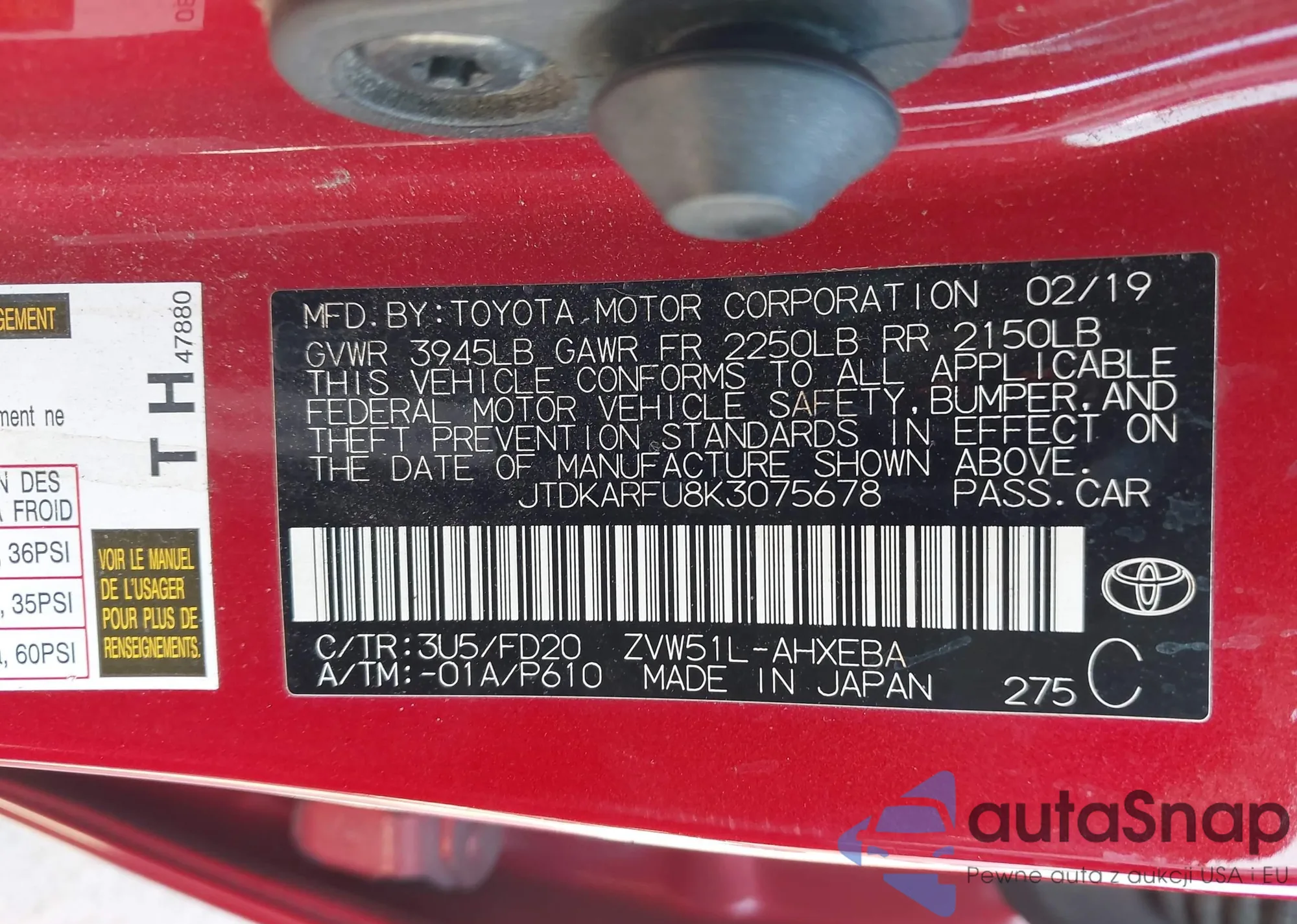 • VIN: JTDKARFU8K3075678