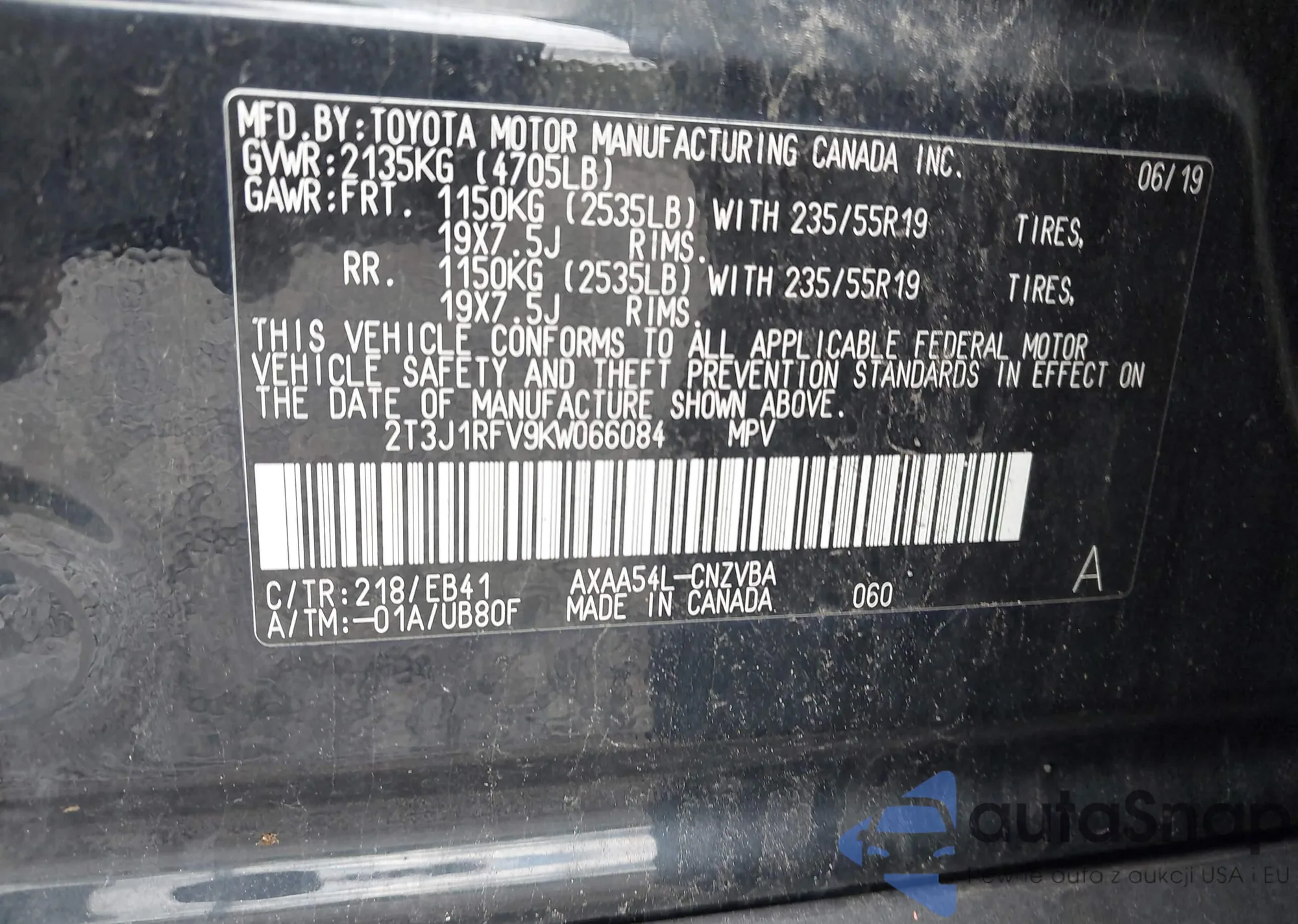 VIN: 2T3J1RFV9KW066084
