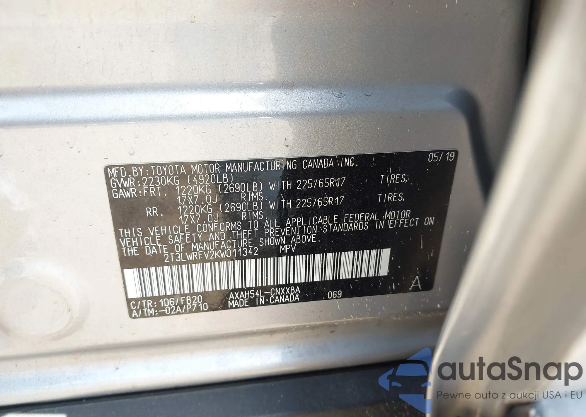 VIN: 2T3LWRFV2KW011342