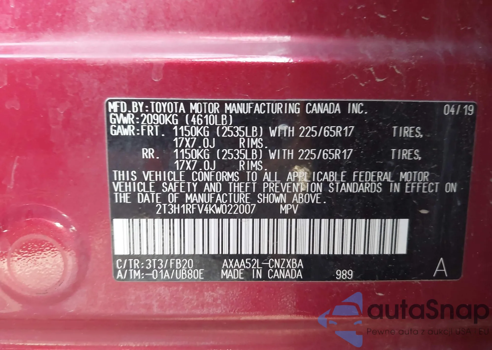 VIN: 2T3H1RFV4KW022007