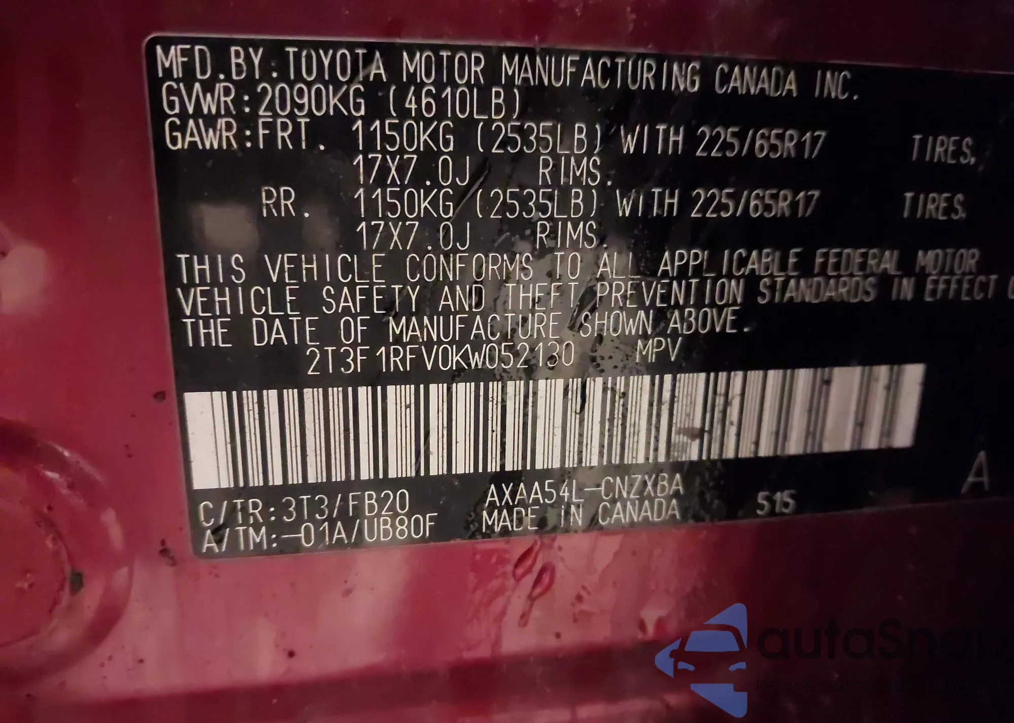 VIN: 2T3F1RFV0KW052130