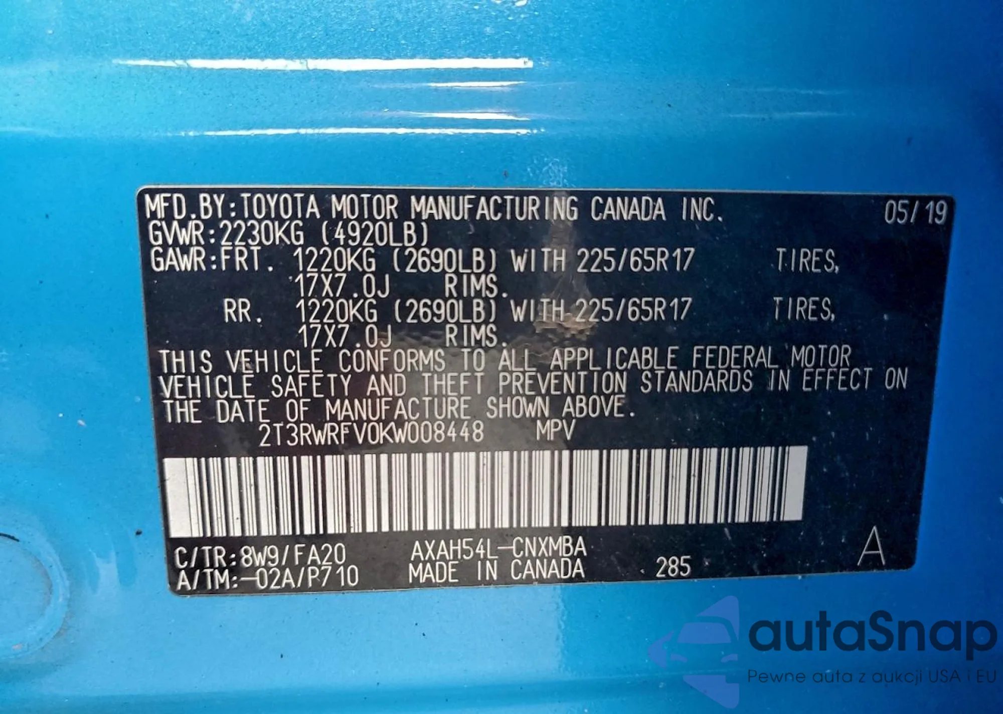 • VIN: 2T3RWRFV0KW008448