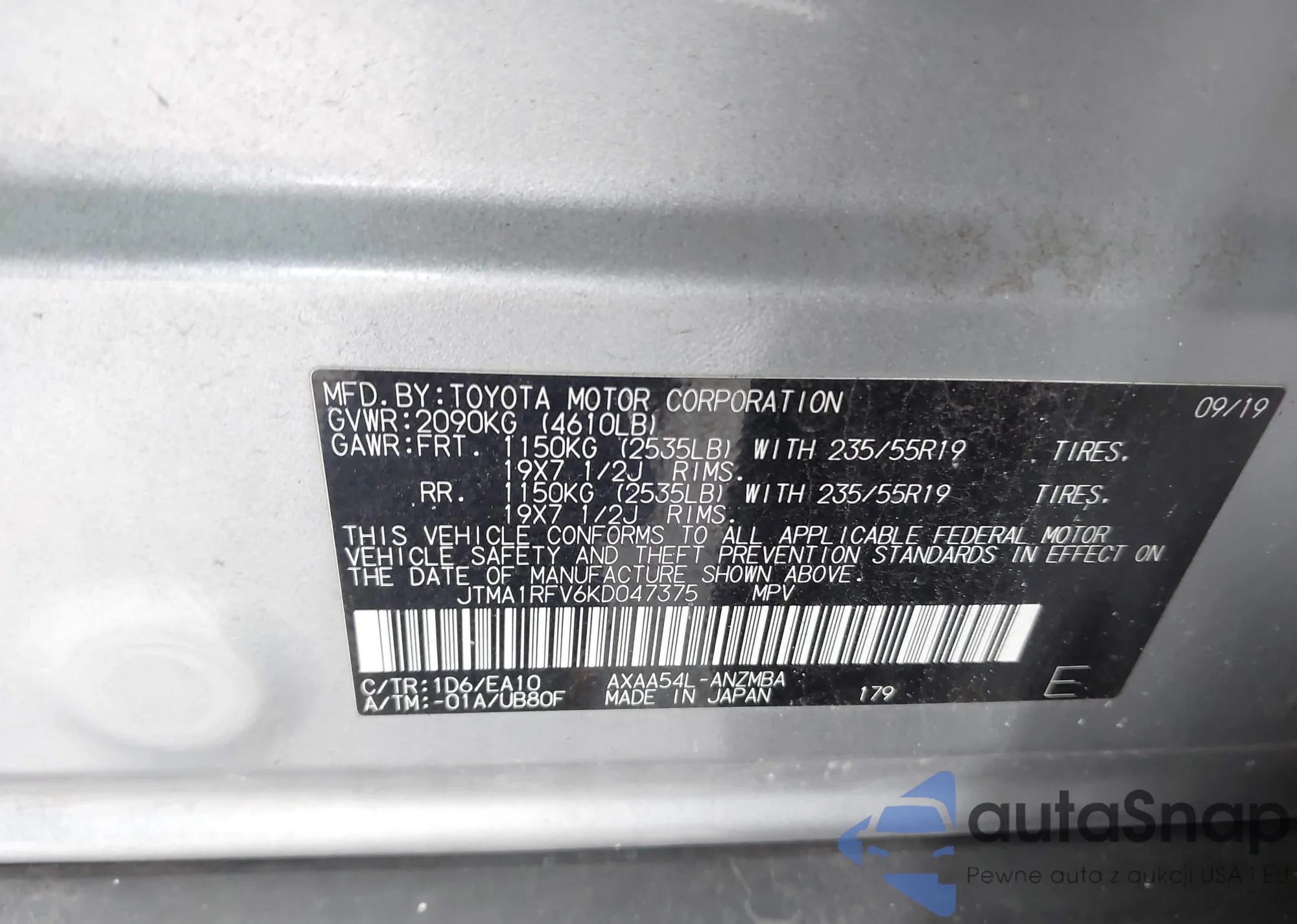 VIN: JTMA1RFV6KD047375
