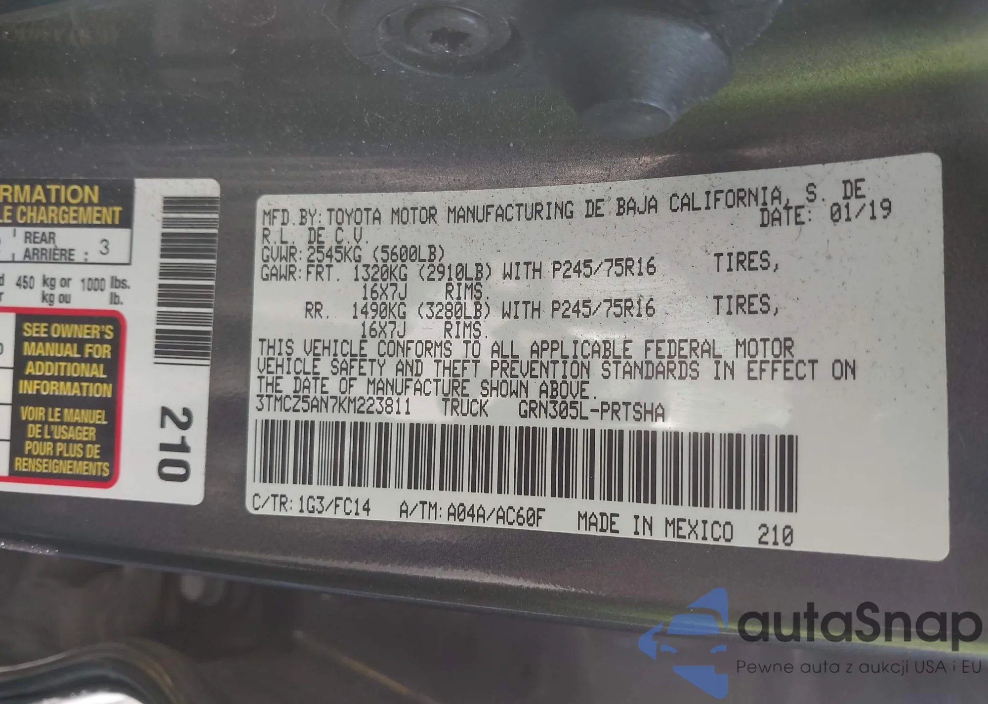VIN: 3TMCZ5AN7KM223811