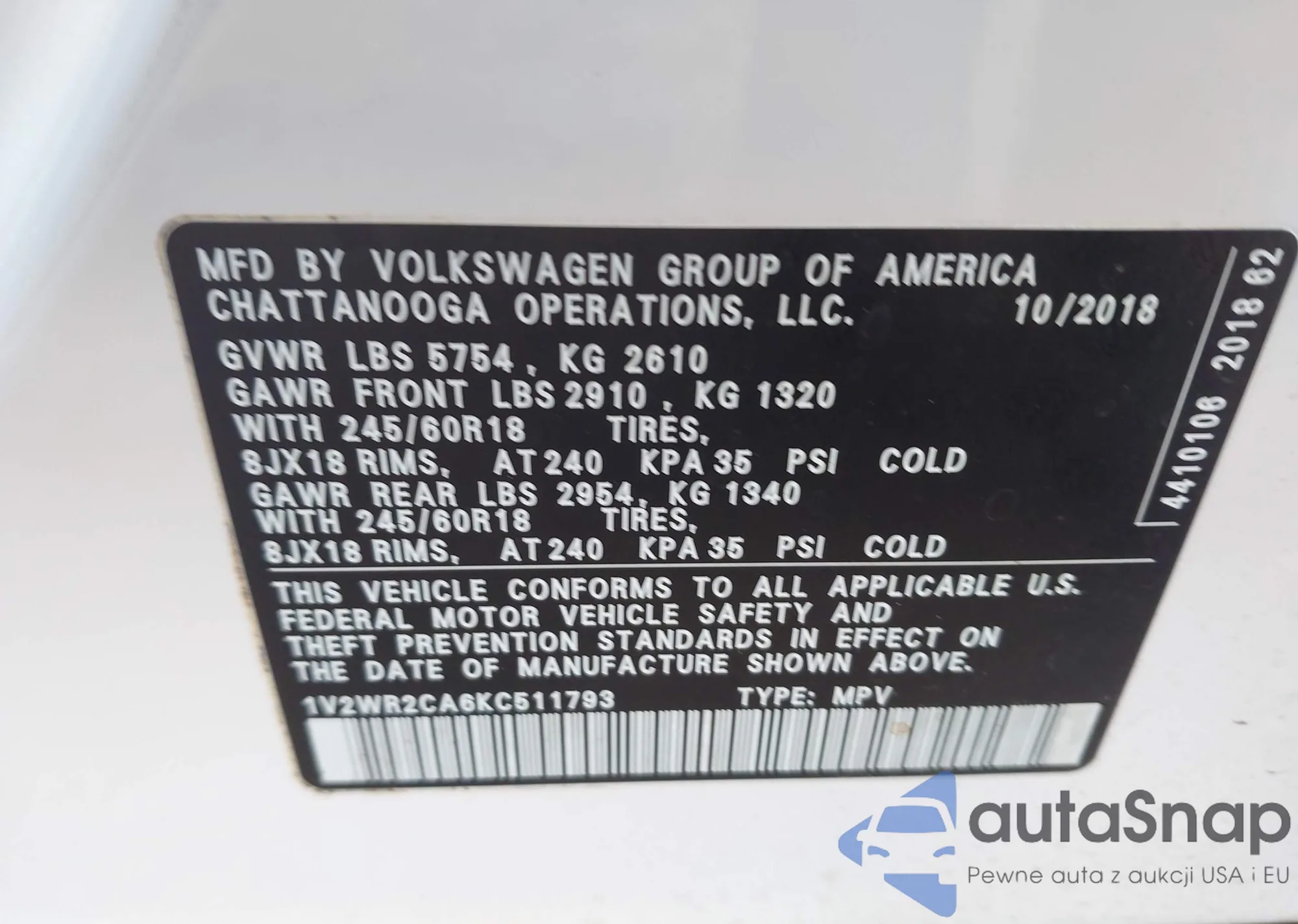 Samochód Volkswagen Atlas 2019 (VIN 1V2WR2CA6KC511793) nie był wcześniej licytowany. Dokumenty są czyste, przebieg odpowiada lub jest niższy niż średnia rynku. Sprzedaje go firma ubezpieczeniowa – polecamy zakup. Dostawa do portu zajmie ok. 6–8 tygodni.