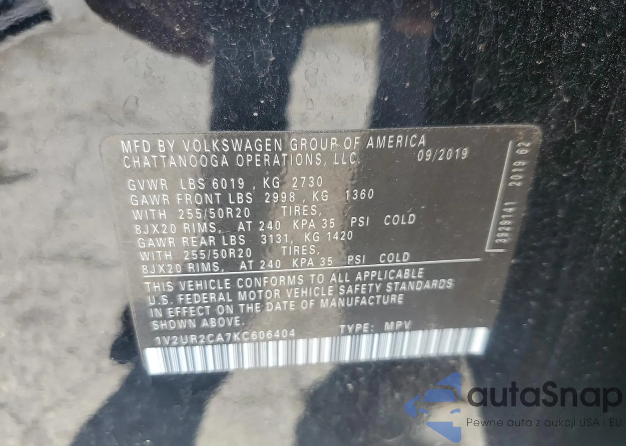 VIN: 1V2UR2CA7KC606404