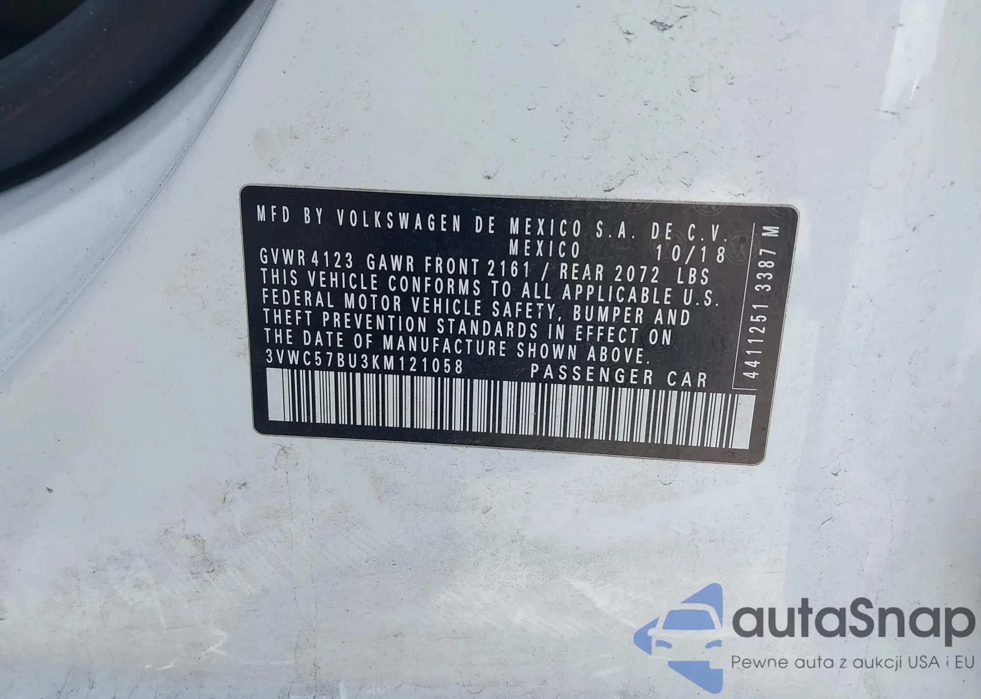 VIN: 3VWC57BU3KM121058