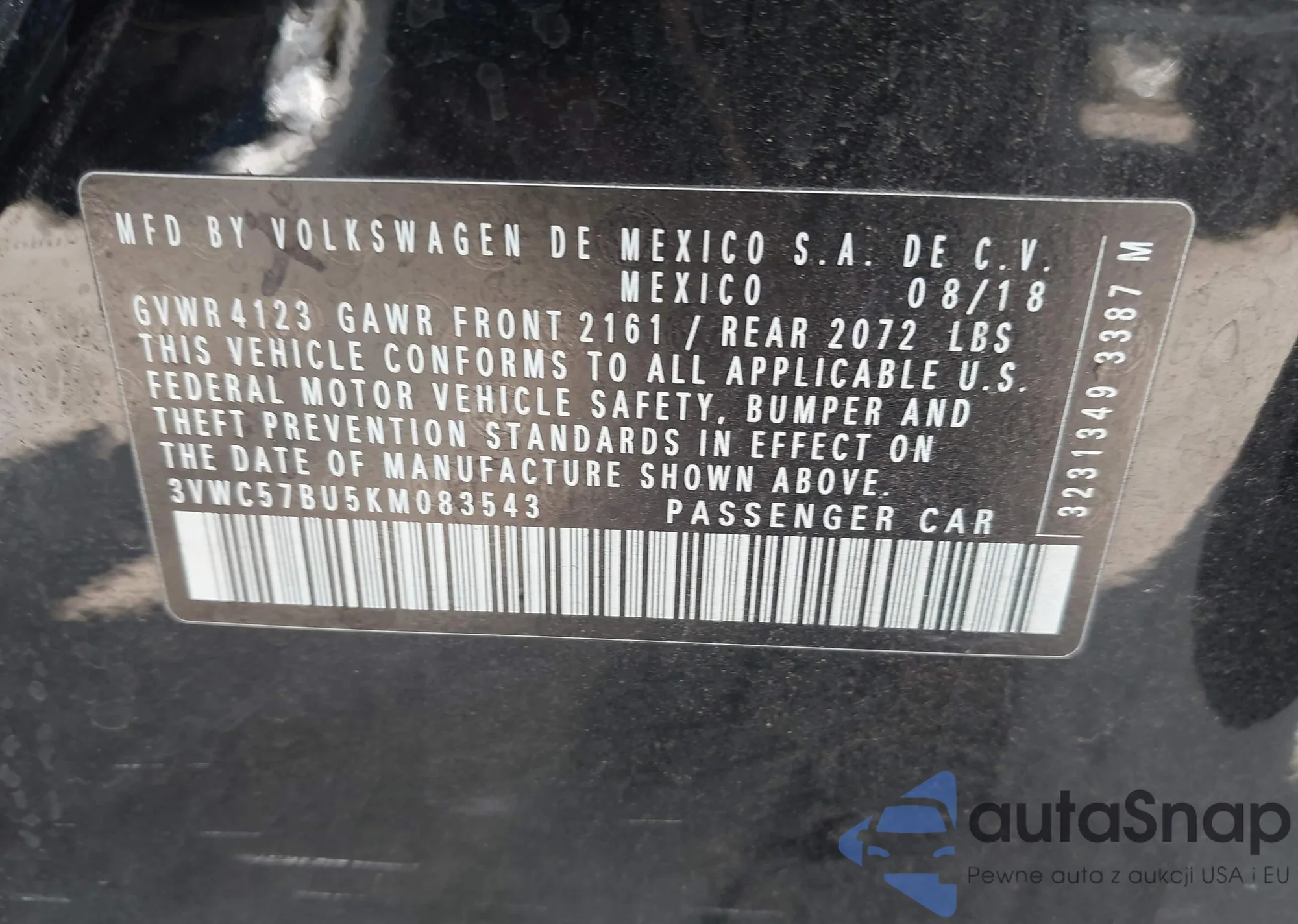 VIN: 3VWC57BU5KM083543