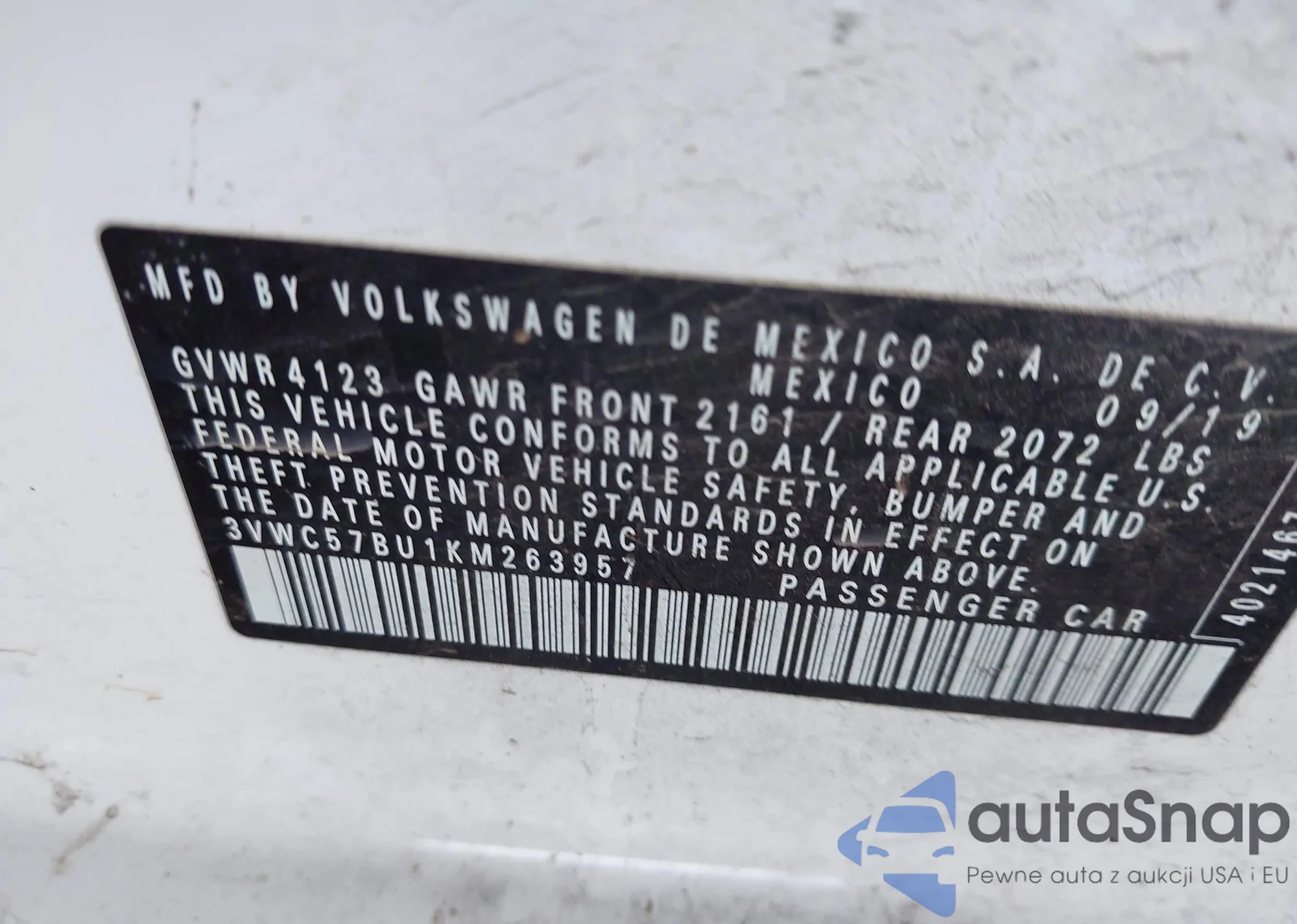 3VWC57BU1KM263957 IAAI