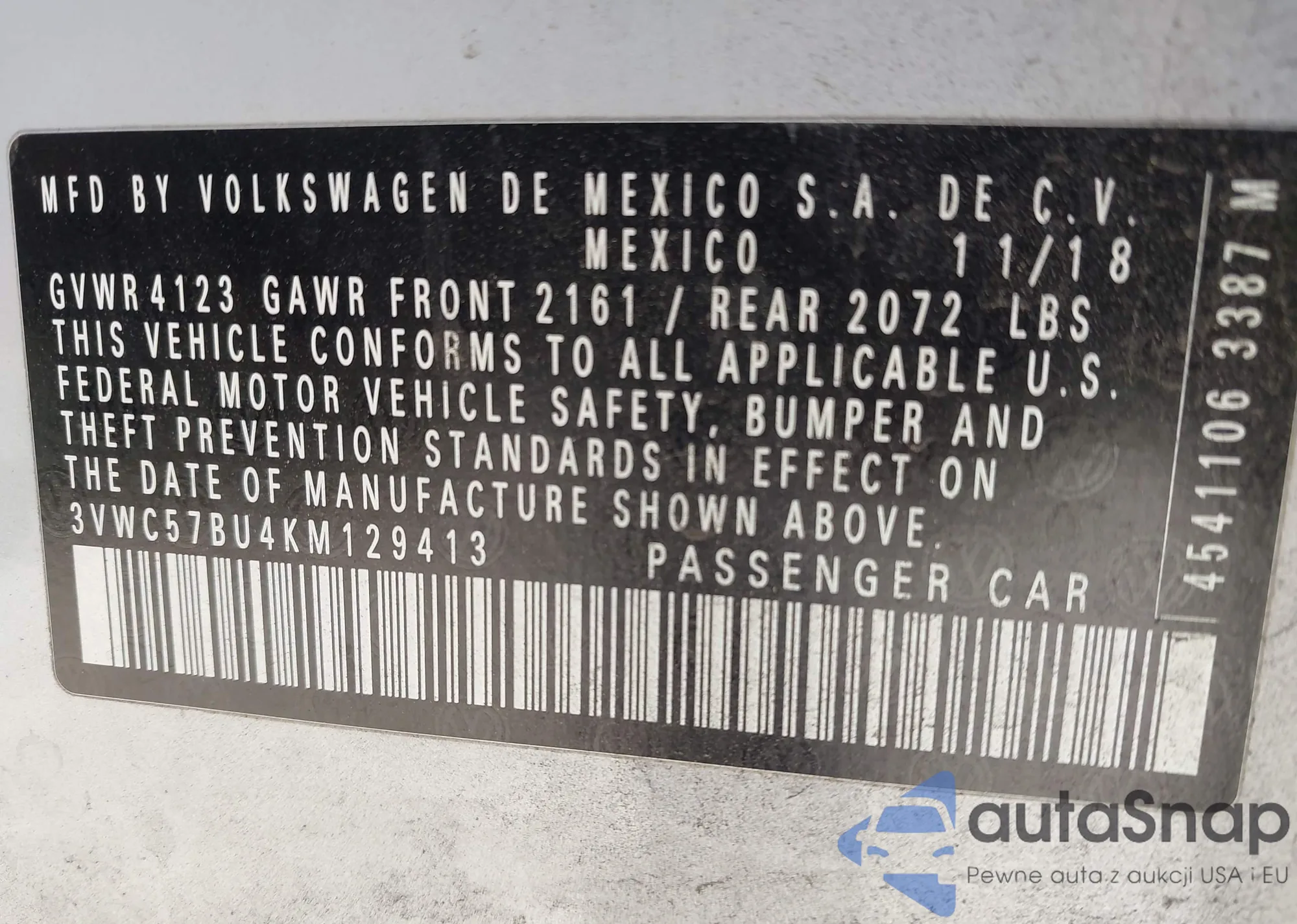 • VIN: 3VWC57BU4KM129413