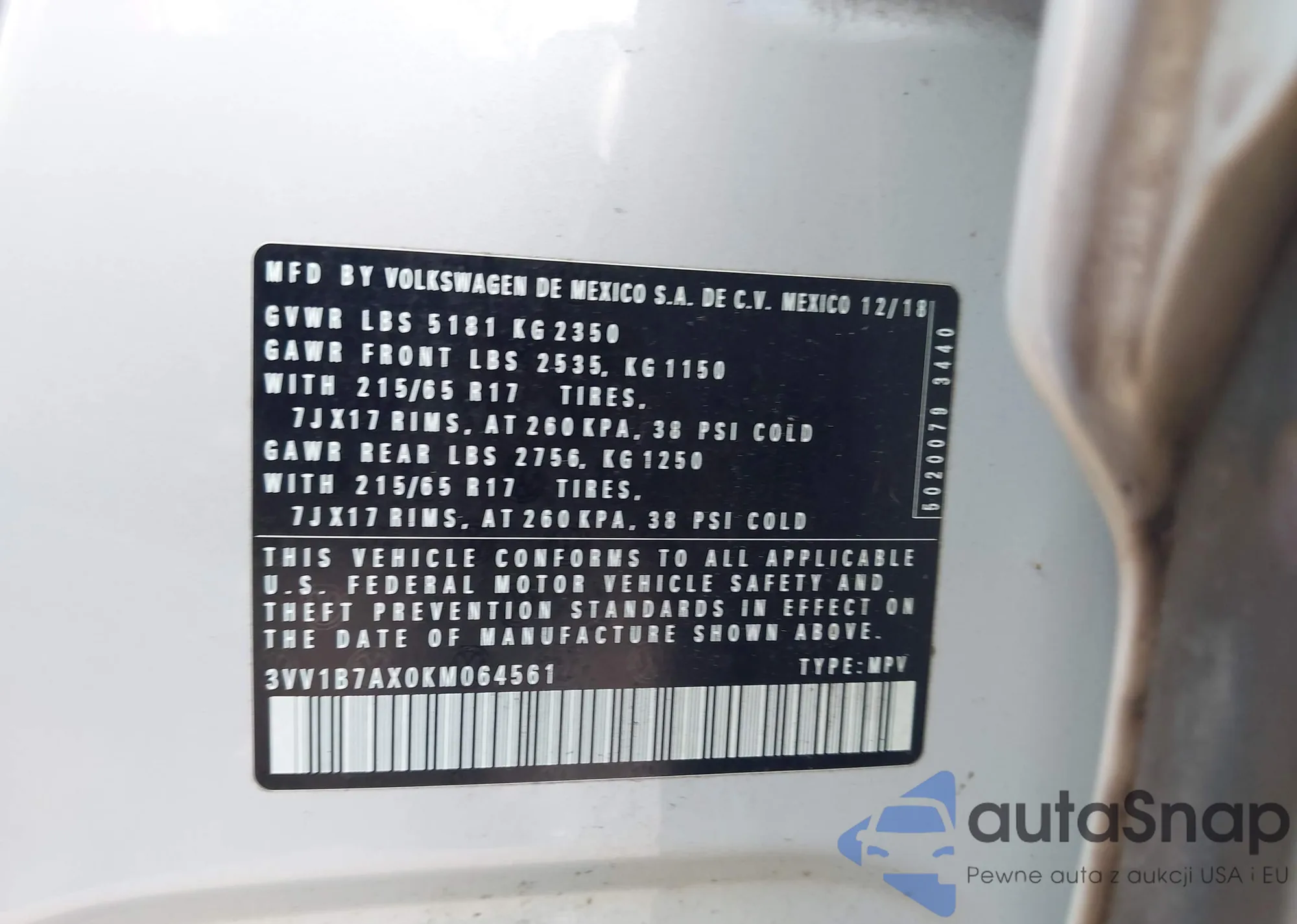 VIN: 3VV1B7AX0KM064561