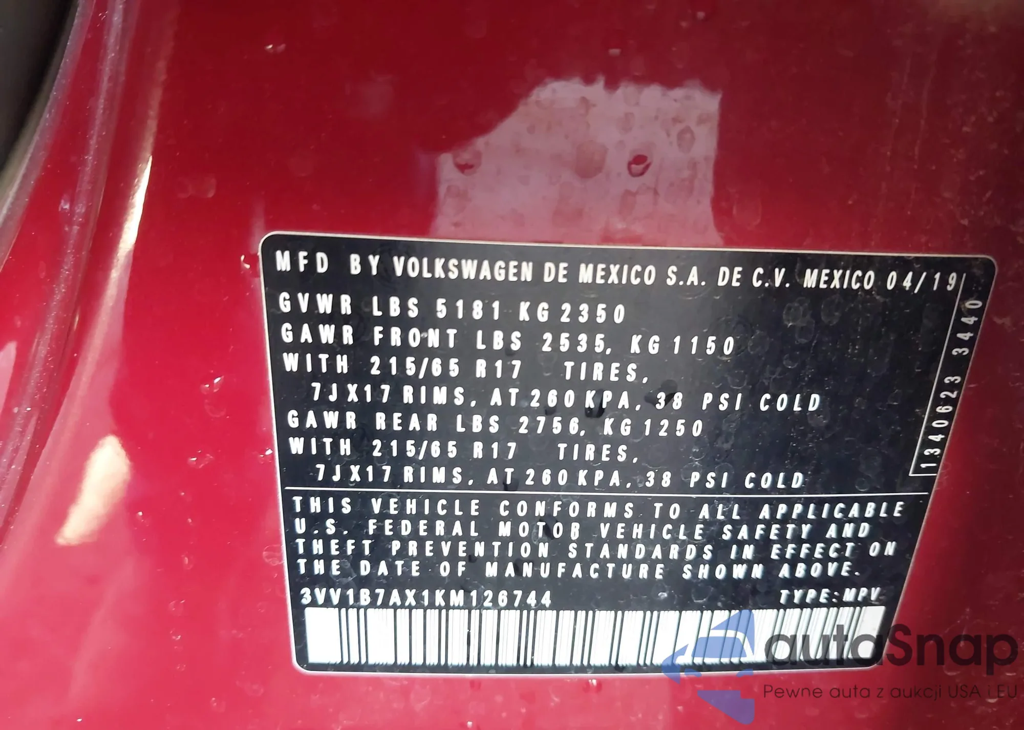 Samochód Volkswagen Tiguan 2019 (VIN 3VV1B7AX1KM126744) nie był wcześniej licytowany. Dokumenty są czyste, przebieg odpowiada lub jest niższy niż średnia rynku. Sprzedaje go firma ubezpieczeniowa – polecamy zakup. Dostawa do portu zajmie ok. 6–8 tygodni.