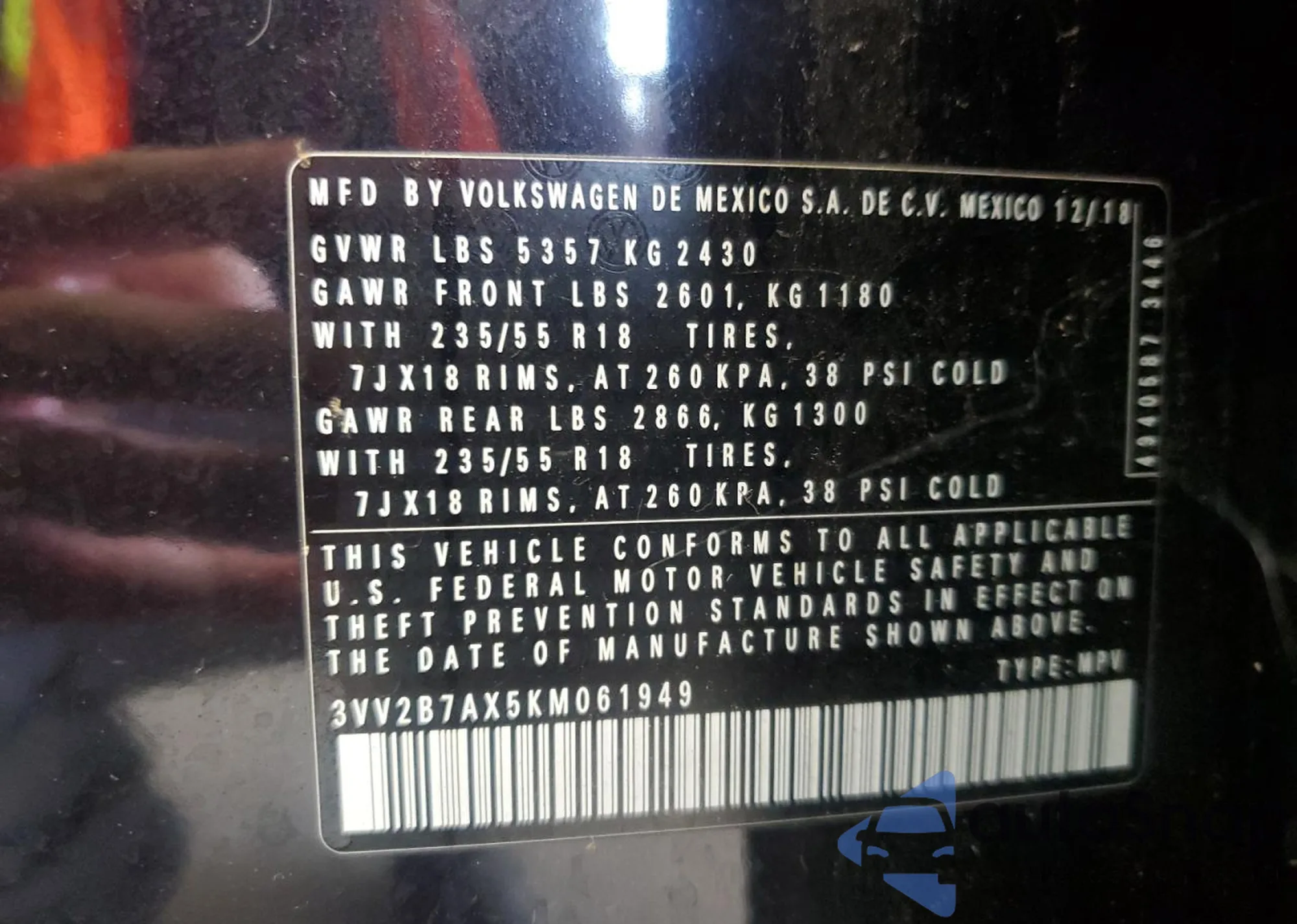 VIN: 3VV2B7AX5KM061949