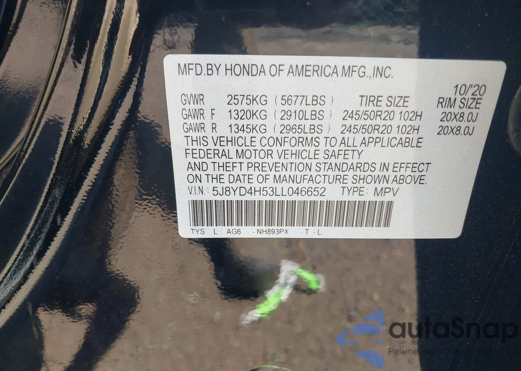 VIN: 5J8YD4H53LL046652
