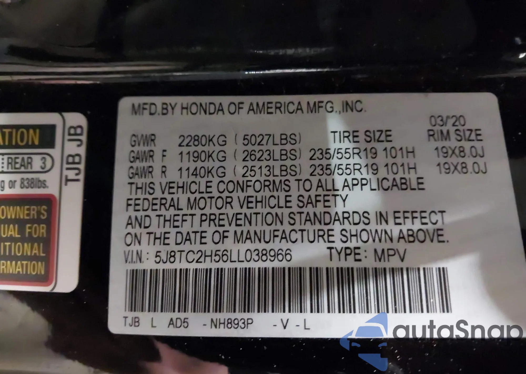 • VIN: 5J8TC2H56LL038966