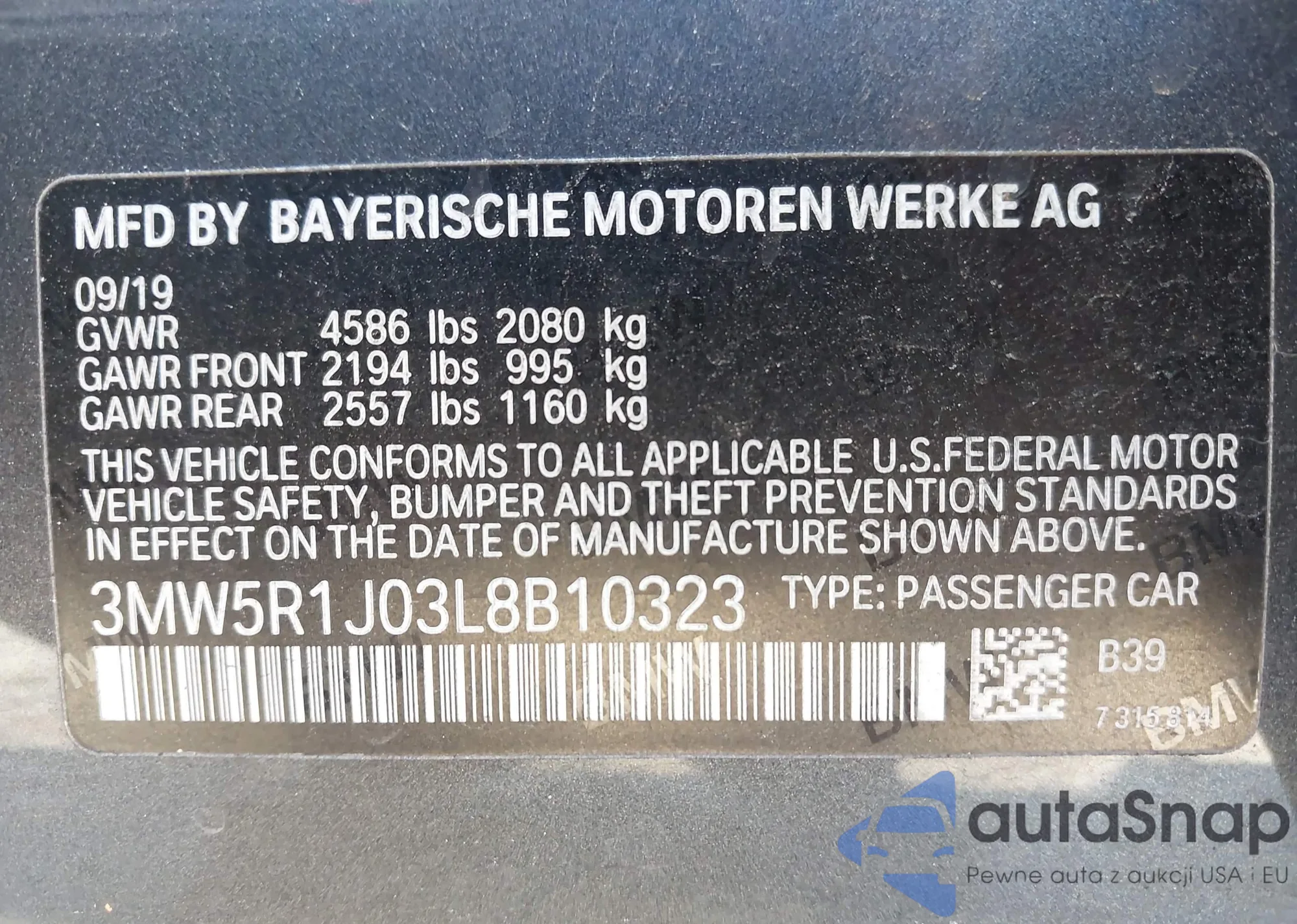 • VIN: 3MW5R1J03L8B10323