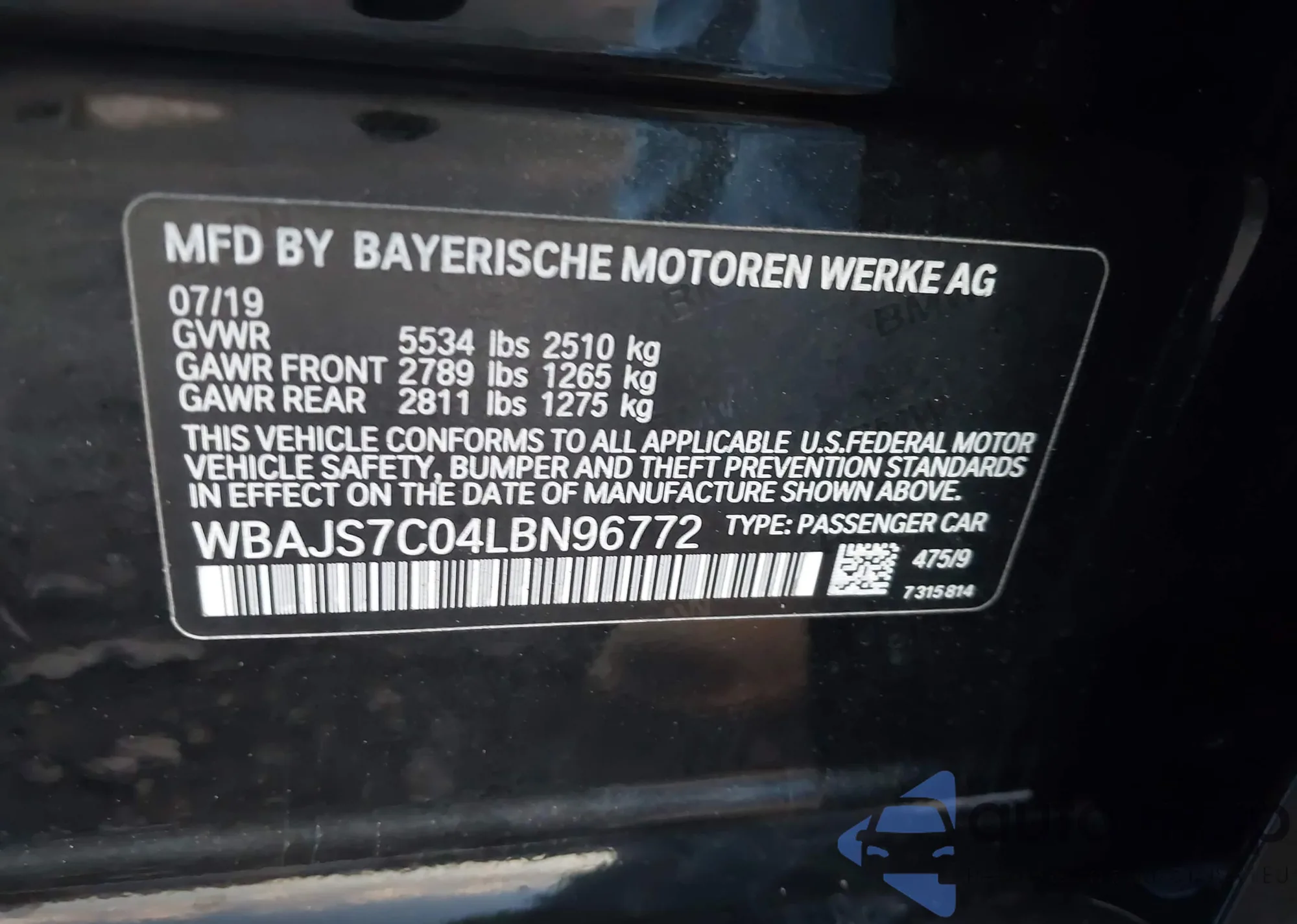 VIN: WBAJS7C04LBN96772