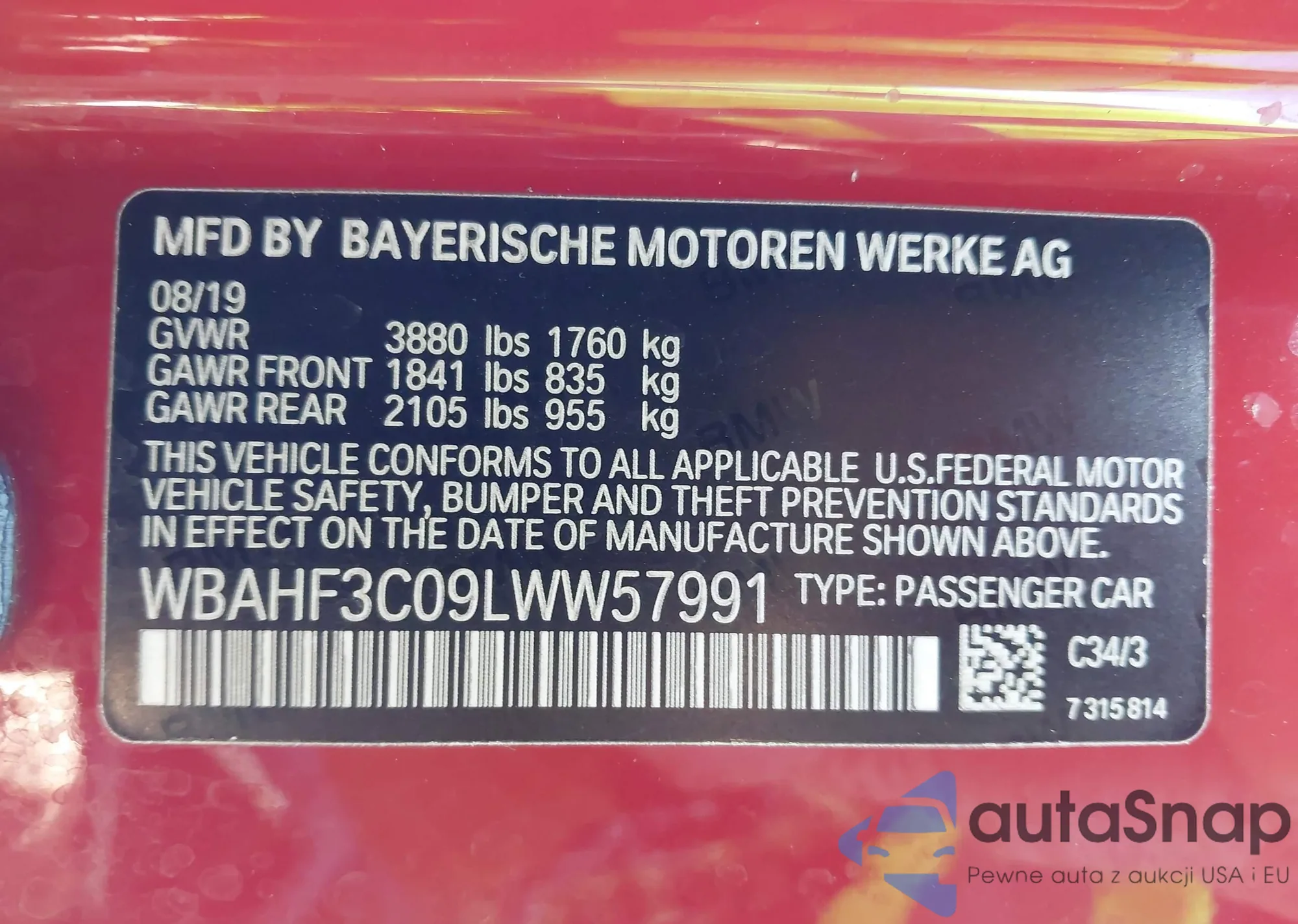 • VIN: WBAHF3C09LWW57991