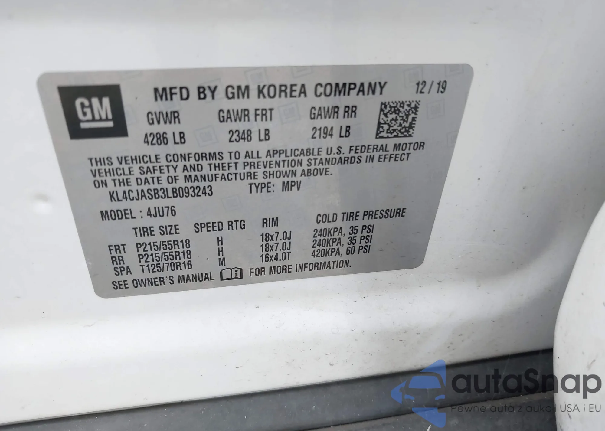 VIN: KL4CJASB3LB093243