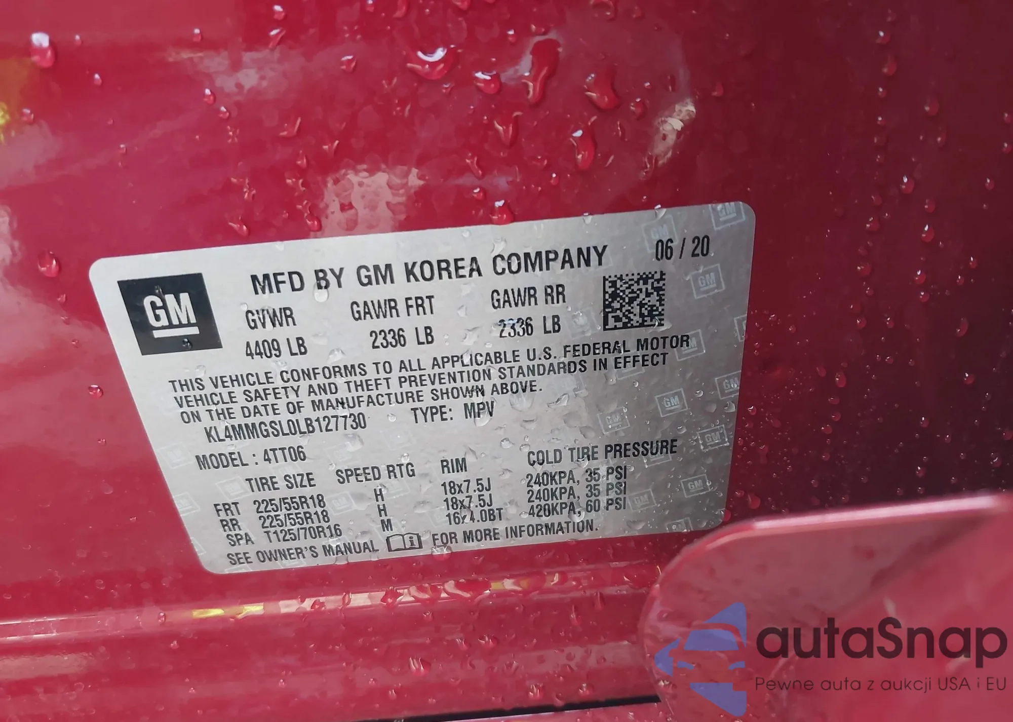VIN: KL4MMGSL0LB127730