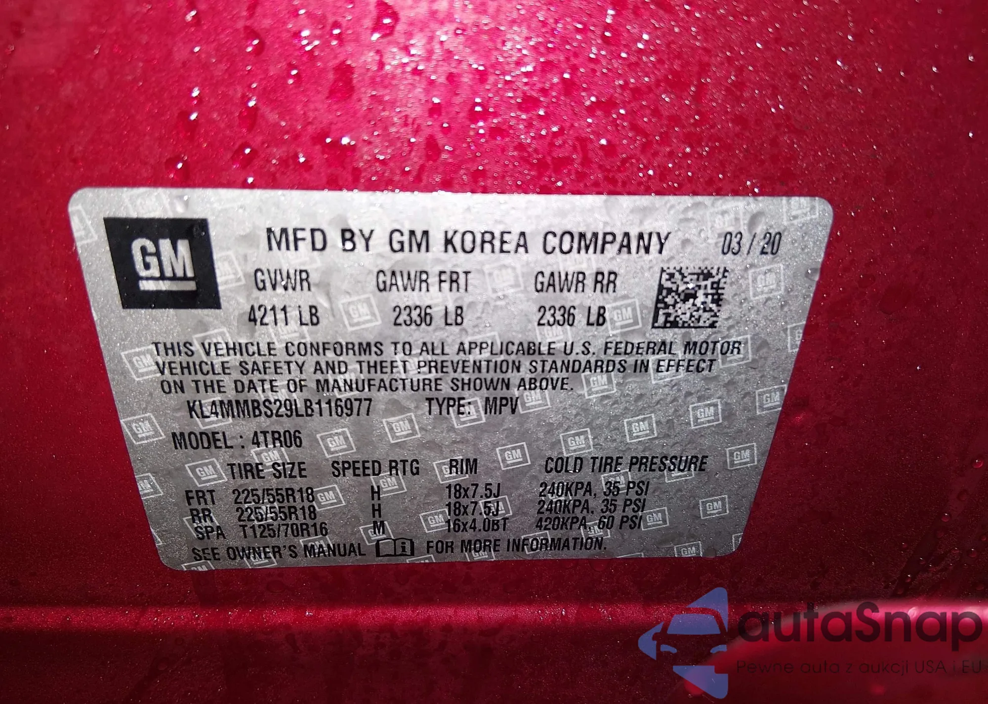 • VIN: KL4MMBS29LB116977